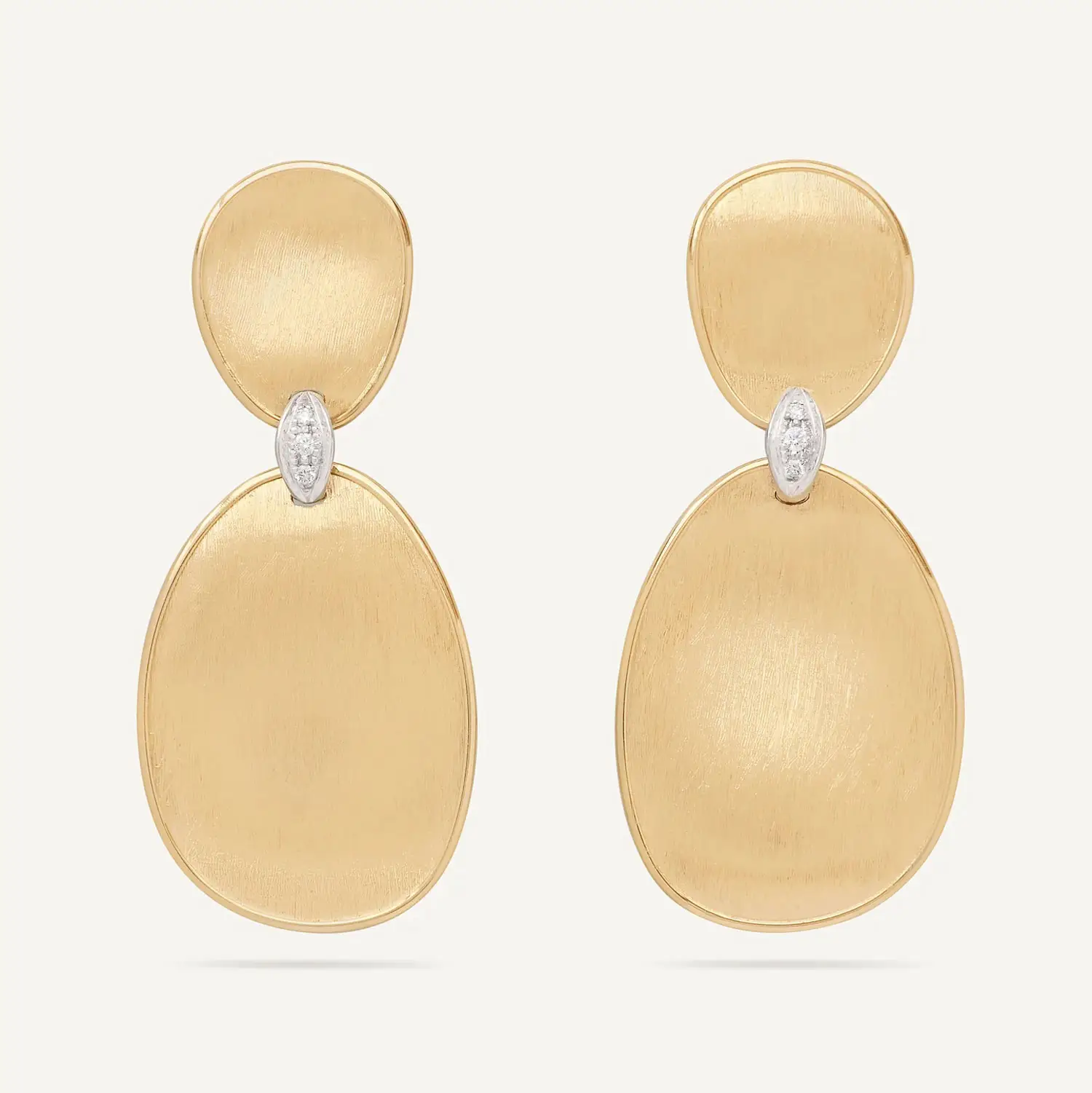 奢华的 Marco Bicego Lunaria Diamonds OB1460_B YW Q6 黄金耳环 采用 18K 黄金(750/1000) 打造,展现 Lunaria 系列的标志性设计。其特色为 手工雕刻金质表面,运用传统佛罗伦萨工艺,呈现丝滑的哑光质感与自然灵感的有机造型。