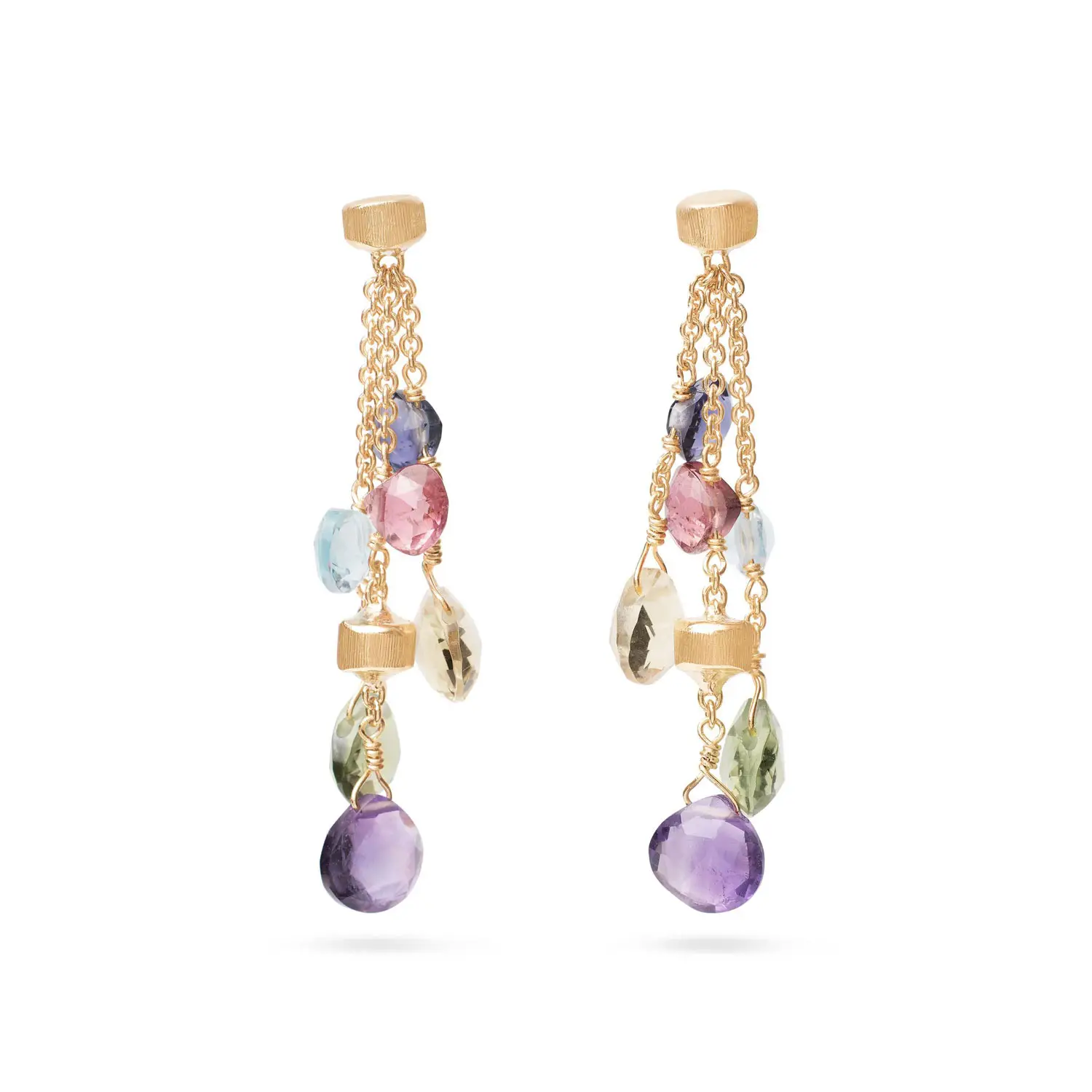 奢华的 Marco Bicego Paradise OB915 MIX01 Y 02 黄金耳环 采用 18K 黄金(750/1000) 打造,属于标志性的 Paradise 系列,灵感来自天然彩色宝石的绚丽色彩以及地中海的自然光影。设计将 精致金质元素与多彩宝石 相结合,呈现优雅而灵动的风格。