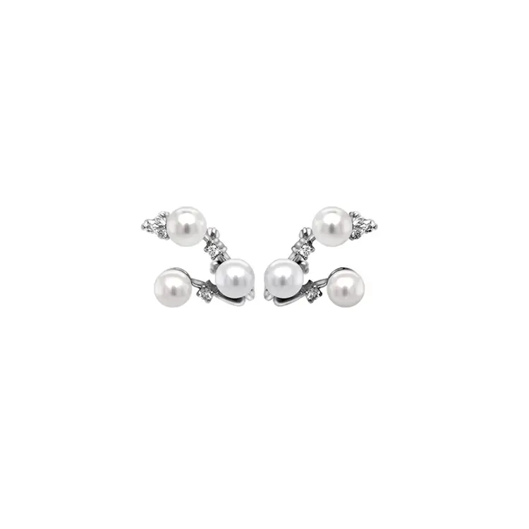 天然珍珠和钻石黄金耳环