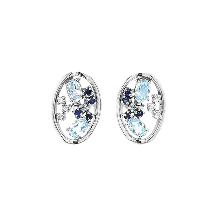 镶海蓝宝石、蓝宝石和钻石的黄金耳环