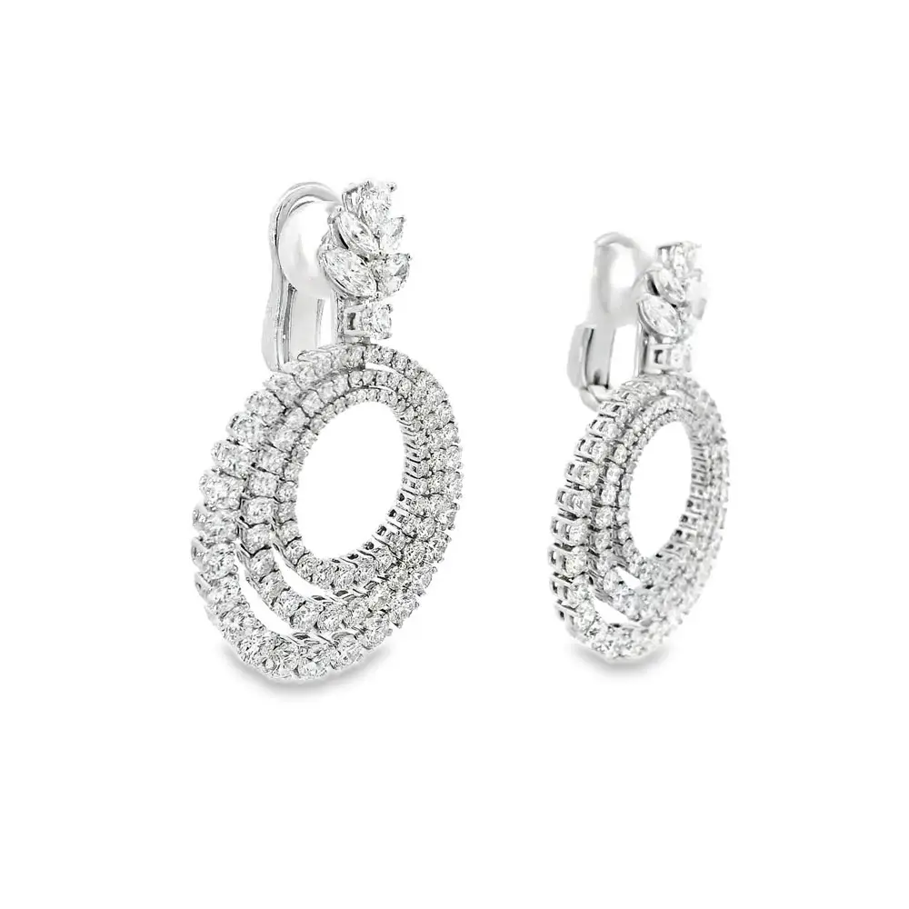 这款来自 Beny Jewellery 的钻石耳环,是高端珠宝艺术与现代优雅的完美结合。采用 18 kt (750/1000) 白金 打造,镜面抛光搭配 夹扣+针式耳扣,舒适稳固,尽显奢华光泽。