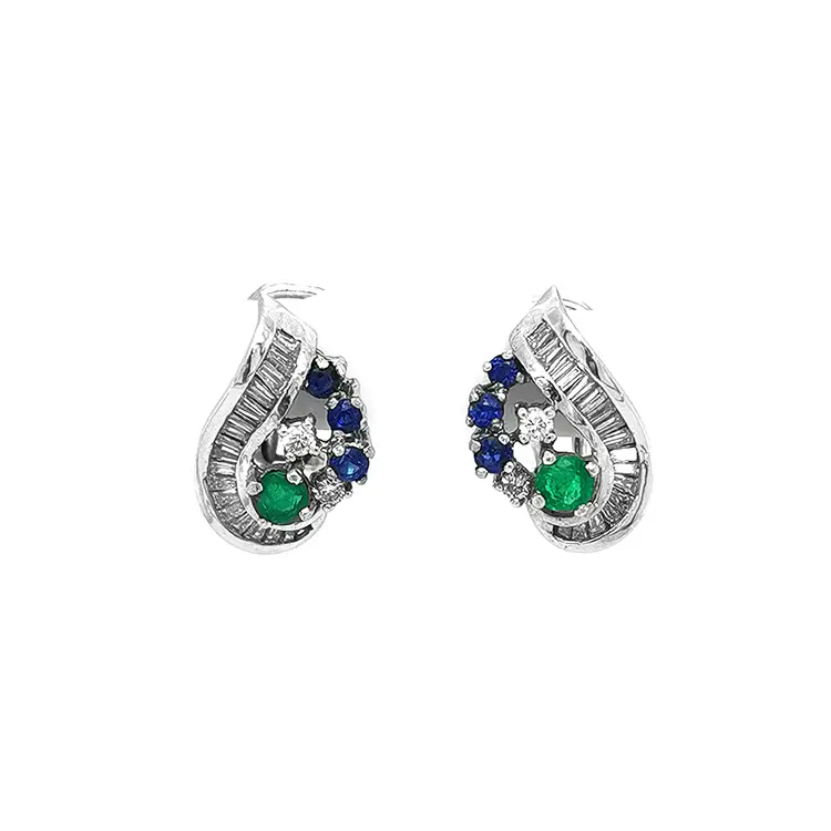 镶祖母绿、蓝宝石和钻石的黄金耳环