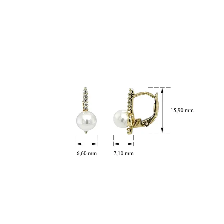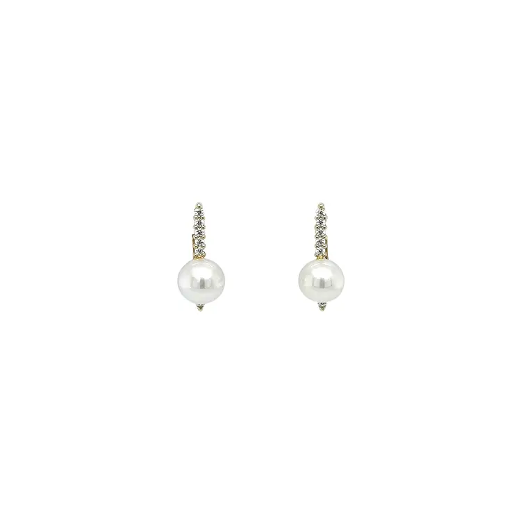 珍珠和锆石金耳环
