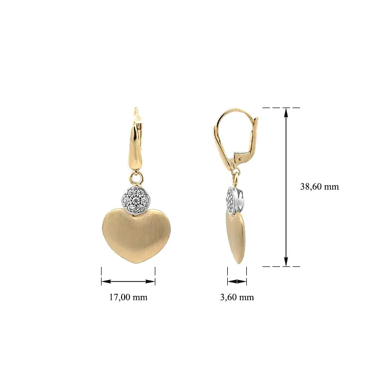 锆石心形金耳环