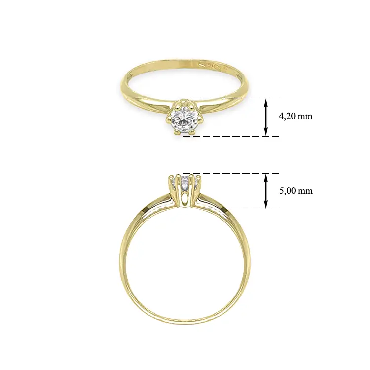 镶嵌立方氧化锆的黄金订婚戒指