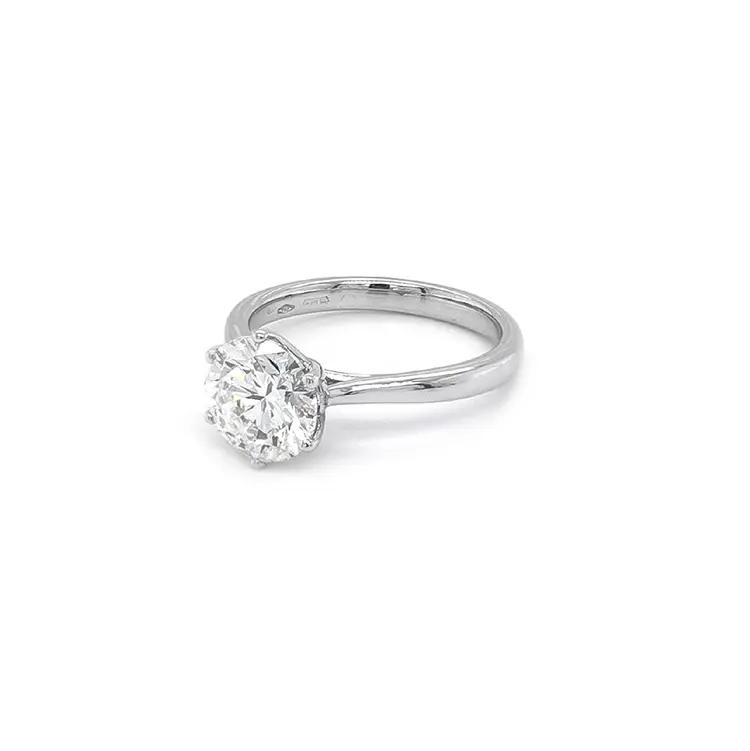 这款 Beny Jewellery 白金订婚戒指象征着纯洁的爱与永恒的优雅。采用 18 kt (750/1000) 白金 手工打造,表面高亮抛光,线条简洁柔美。中心镶嵌一颗 2.00 克拉天然圆形切割钻石,闪耀着无与伦比的光芒。