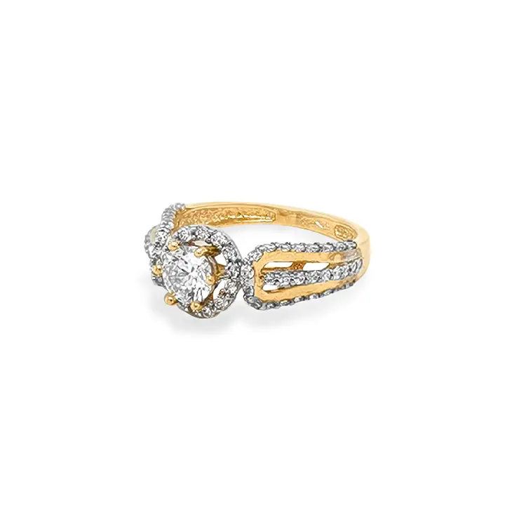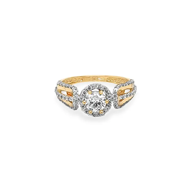 锆石黄金订婚戒指