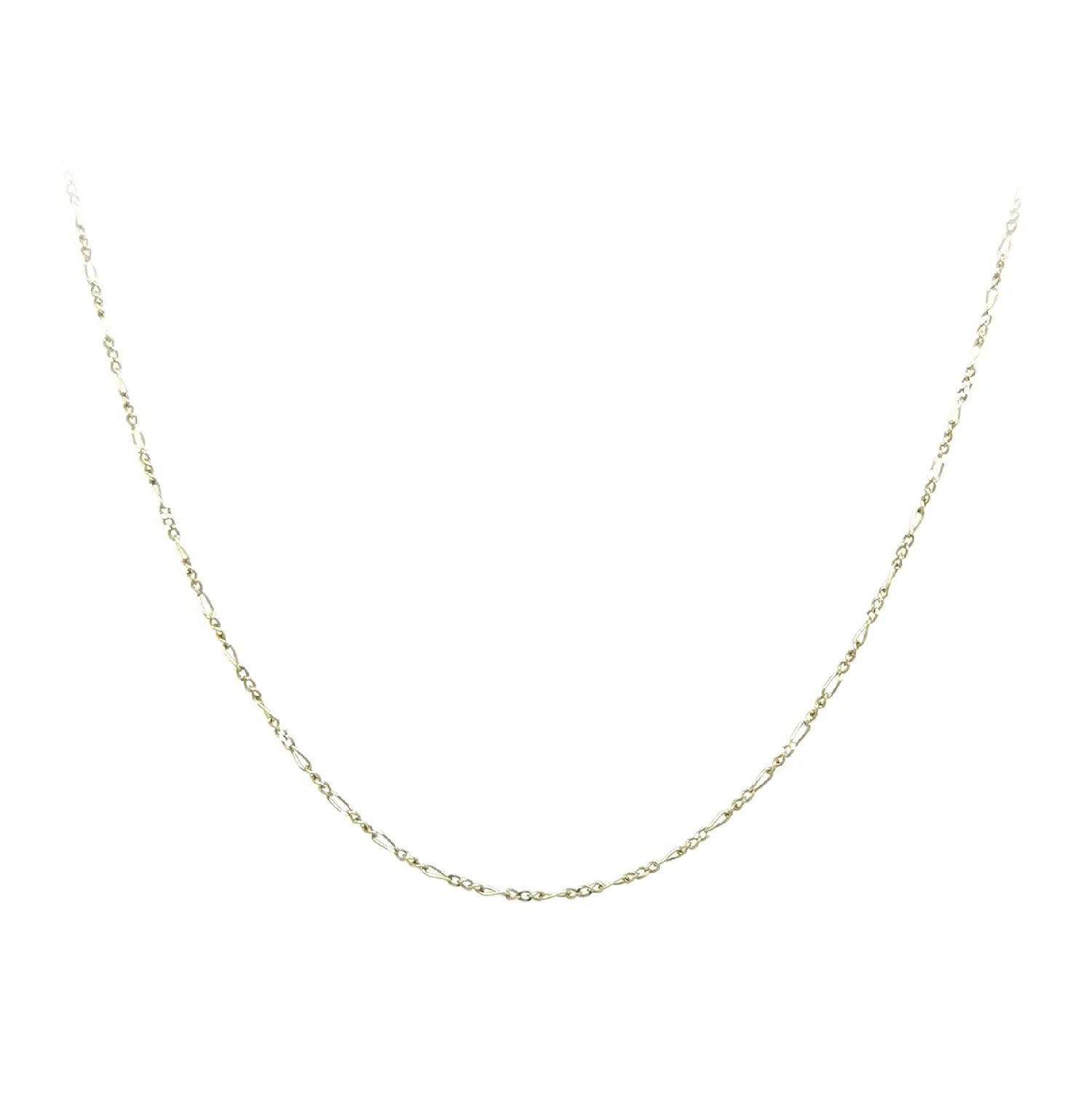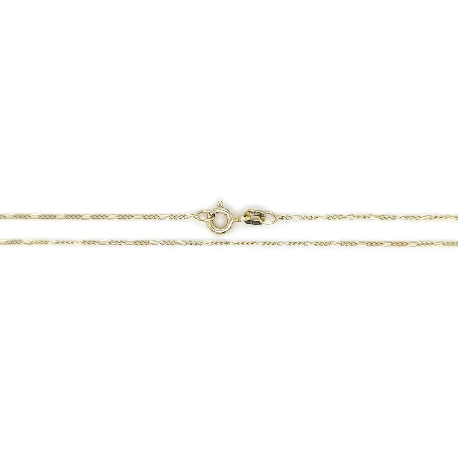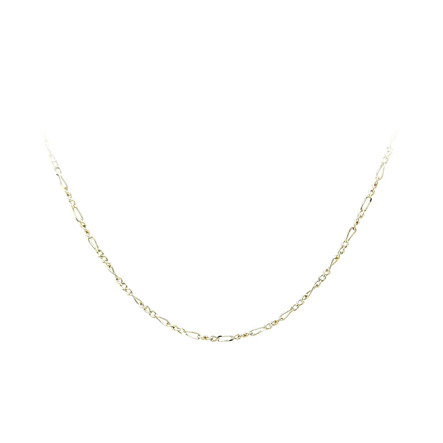 这款黄金 Figaro 链采用经典的长短链节交替设计,造型优雅且永不过时。纤细的链身展现出低调光泽,适合日常佩戴或搭配吊坠。