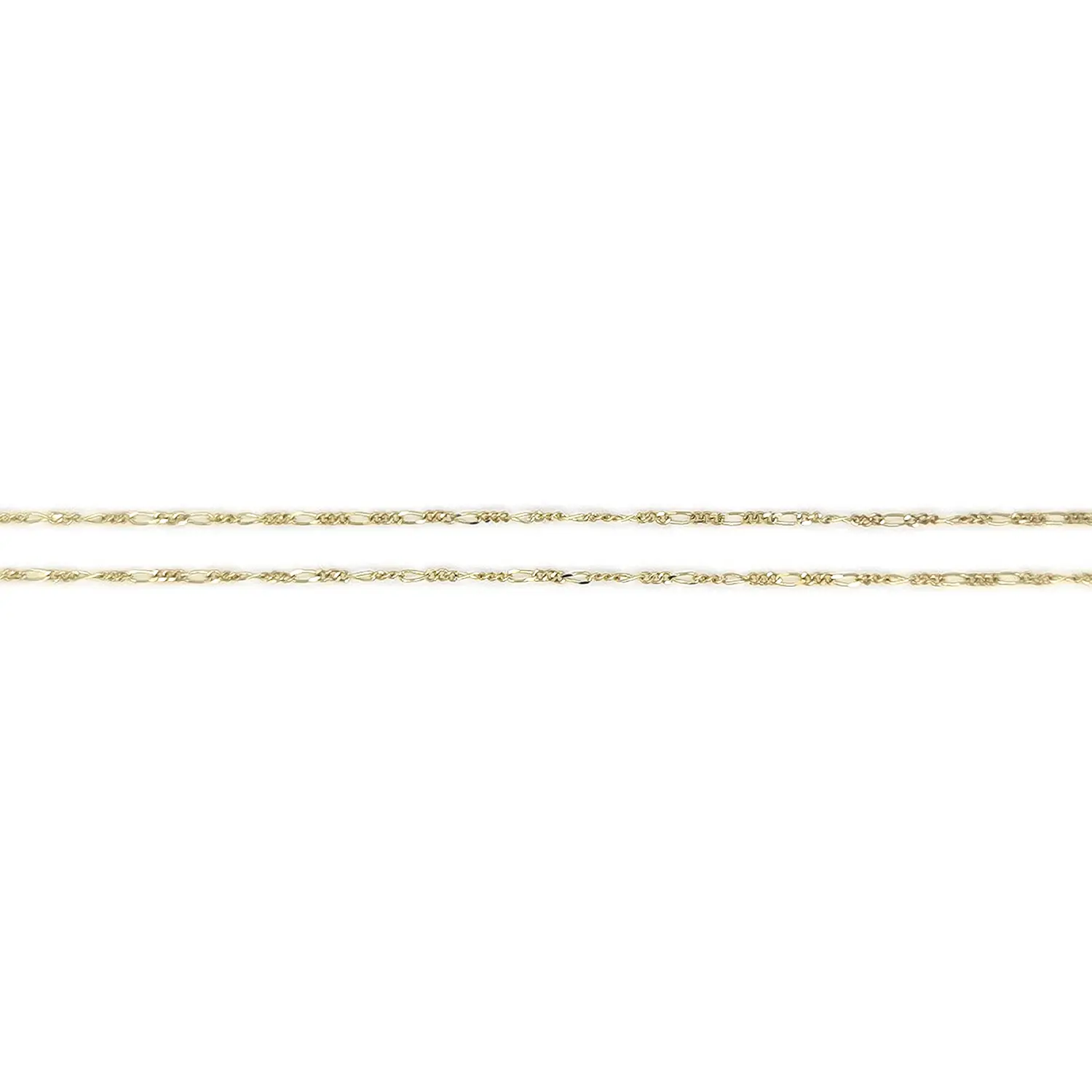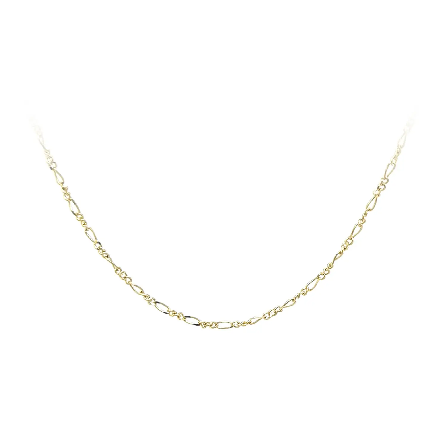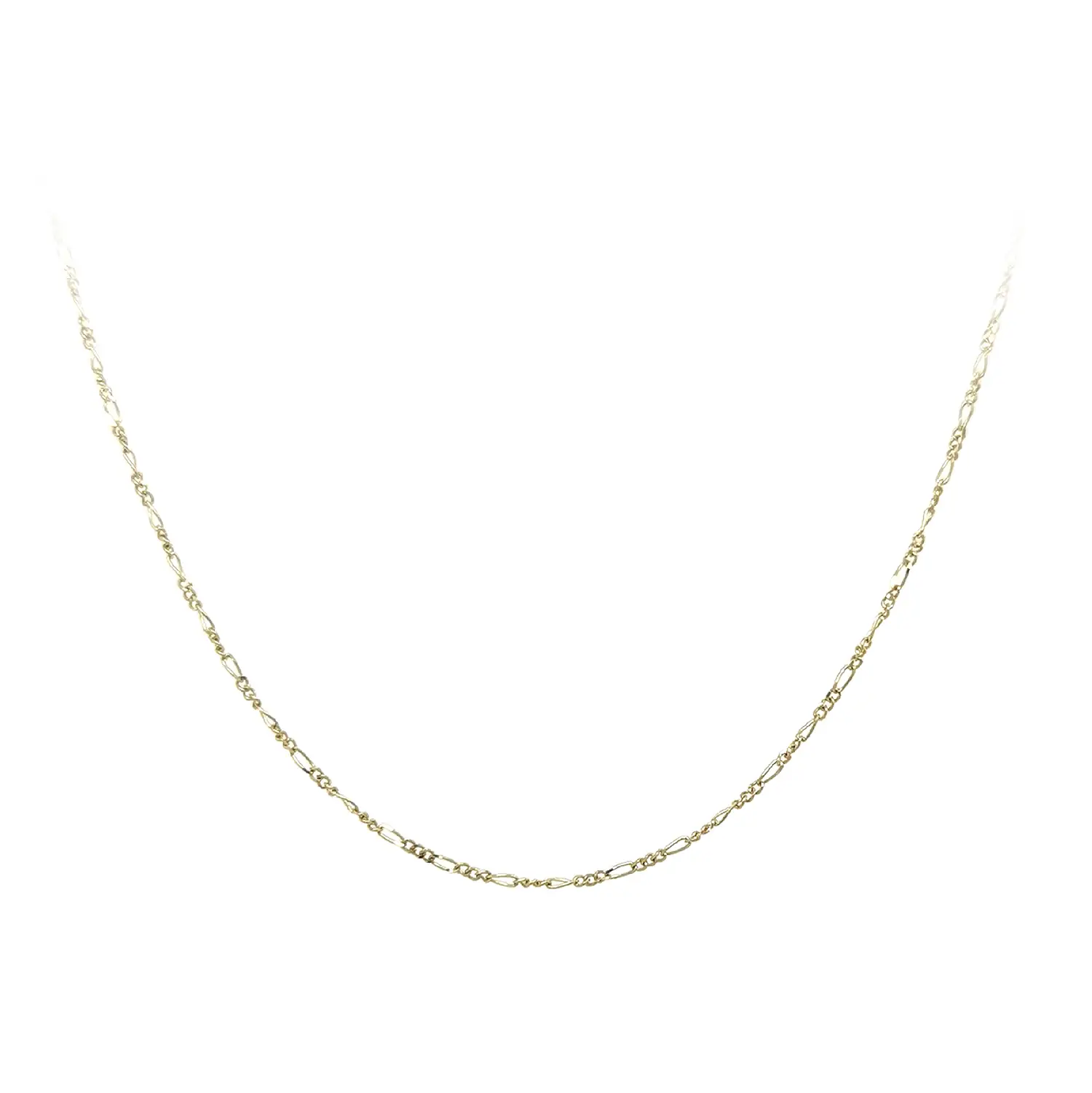 这款采用 Figaro 纹样 的金项链以其经典设计脱颖而出,长短链节有规律地交替排列,呈现出优雅而现代的风格。无论日常佩戴还是正式场合都十分合适,可单独佩戴,也可搭配吊坠。
