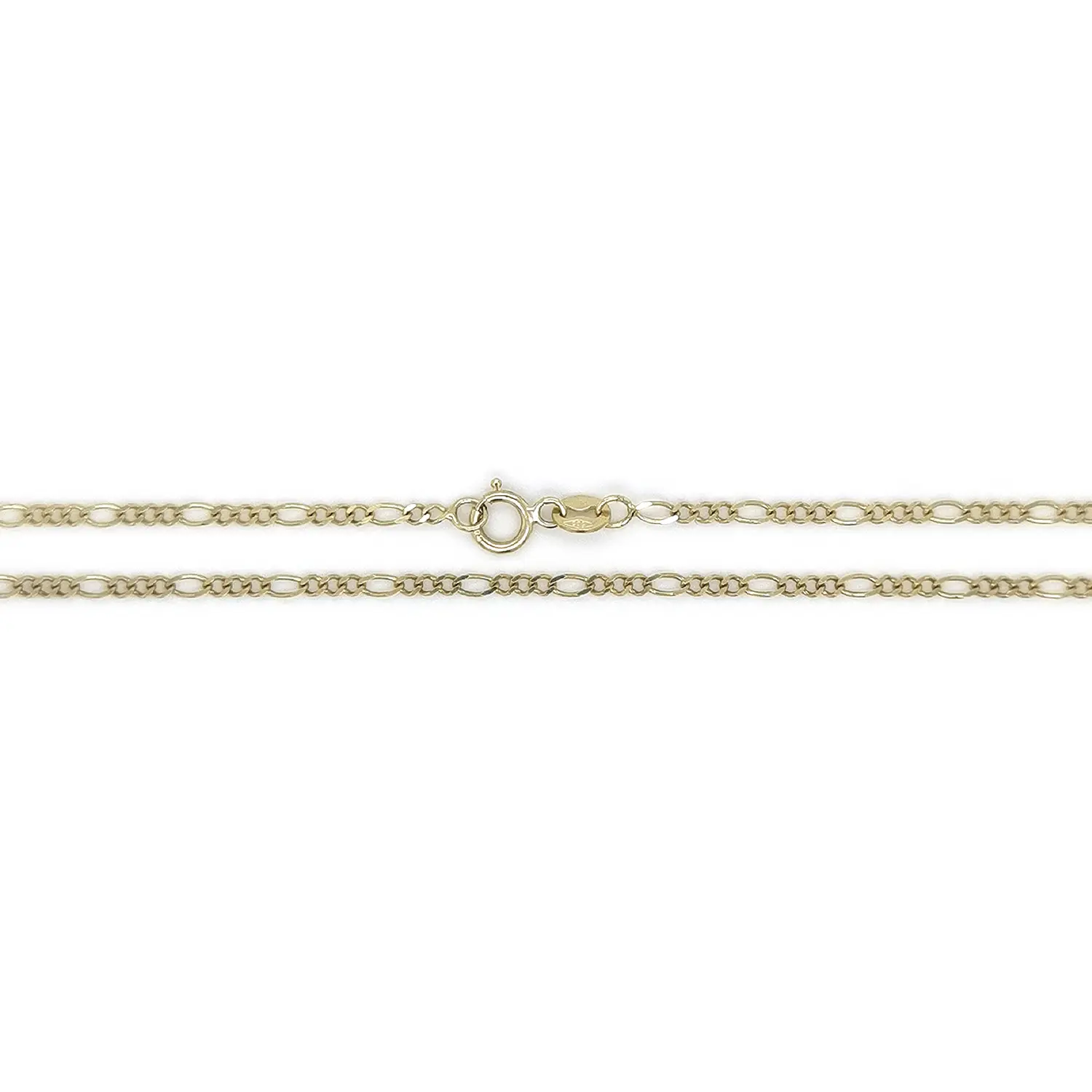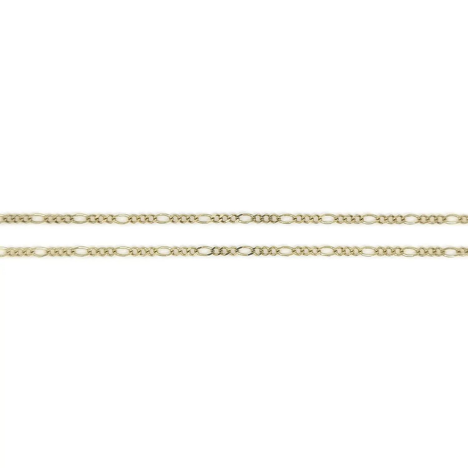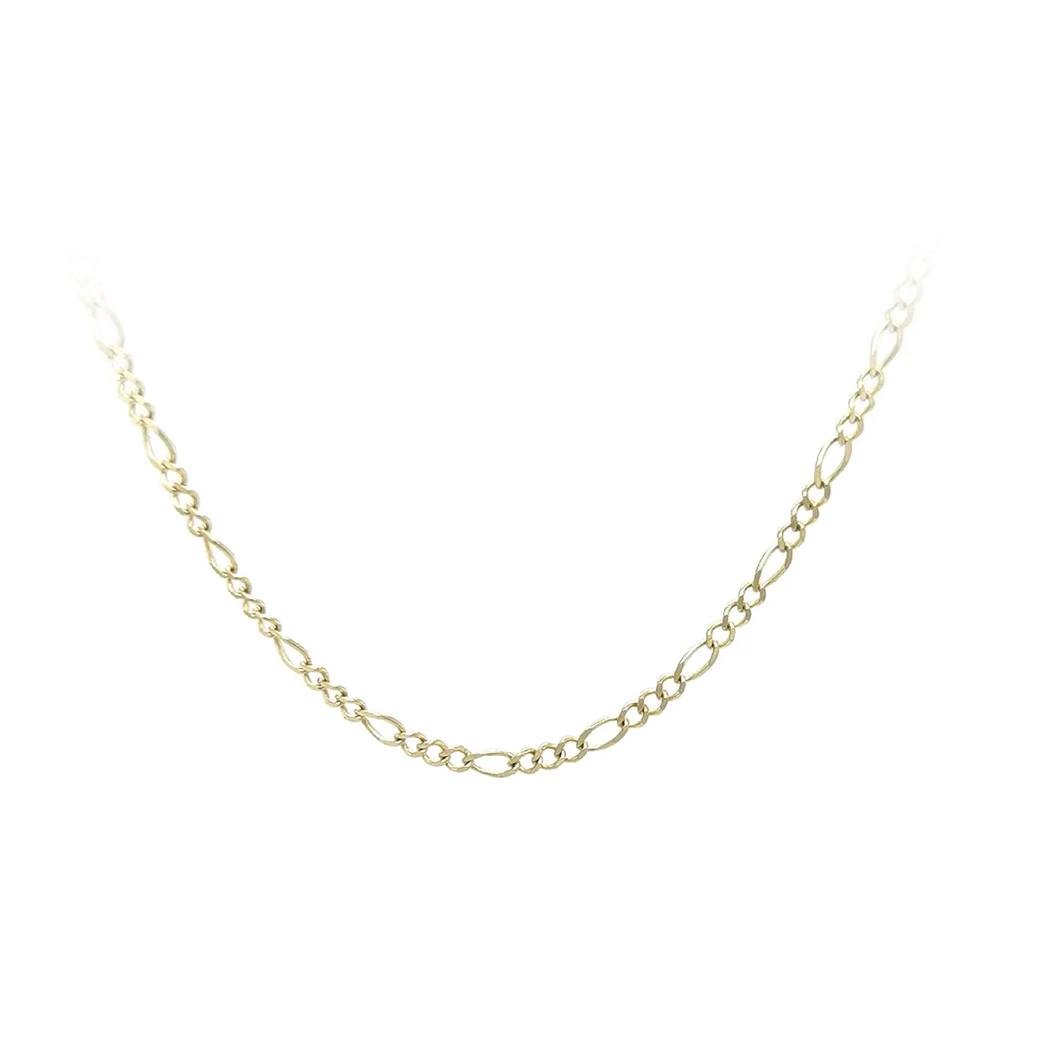 黄金 Figaro 项链 以其经典的链节节奏而闻名:一个较长的椭圆链节与三个较短链节交替排列。其标志性结构轻盈、现代又优雅,适合日常佩戴,也适合特殊场合。抛光细腻的表面能在每次动作中柔和闪耀。