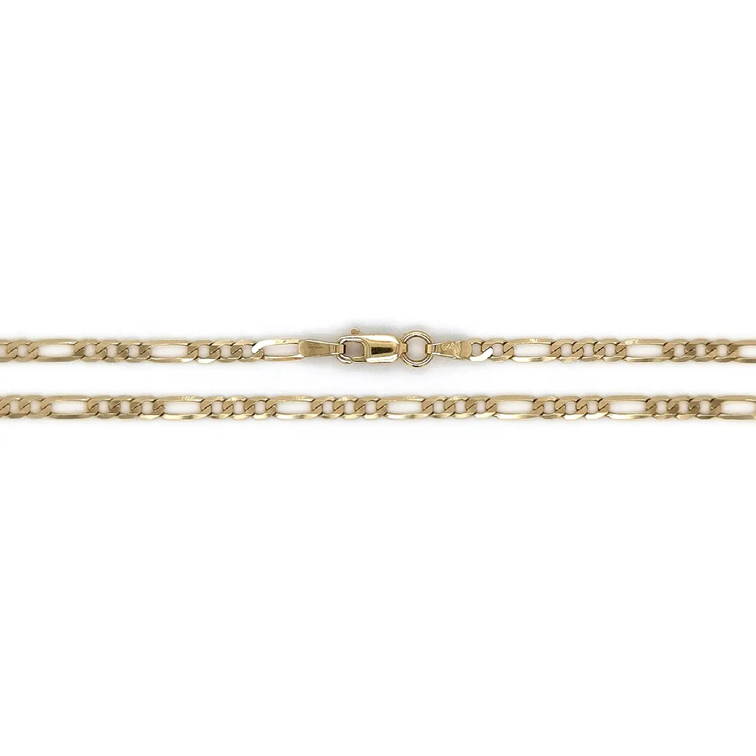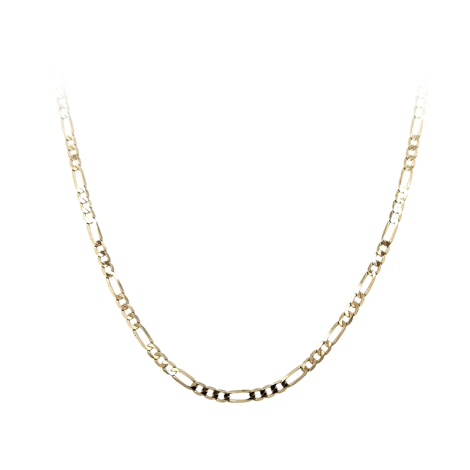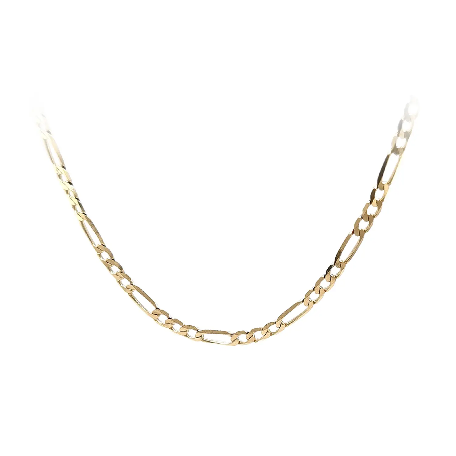这款 Figaro 黄金项链 长 50 厘米、宽 2.50 毫米,以其标志性的链节节奏——一个较长椭圆链节搭配三个较短链节——展现优雅经典之美。设计轻盈却富有存在感,使其无论在日常佩戴或正式场合都格外出众。精细抛光的链节在光线下闪耀出柔和而奢华的光泽。