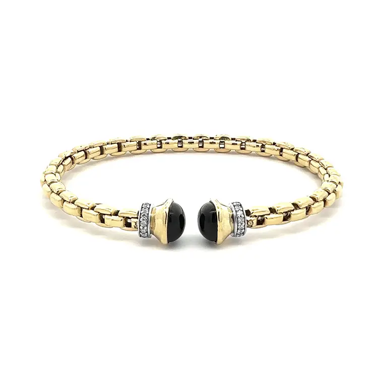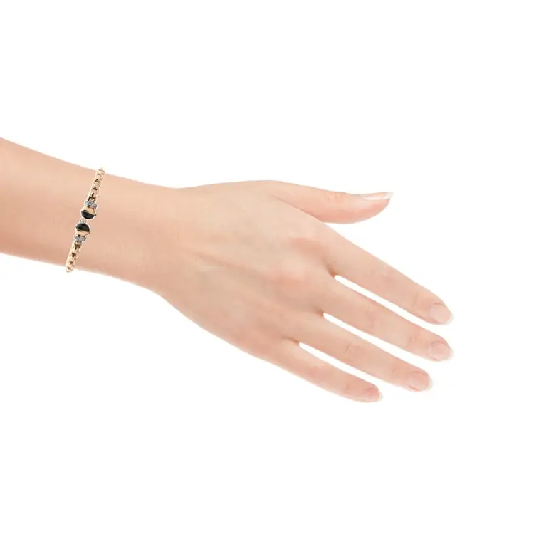 镶嵌黑玛瑙的黄金固定手链
