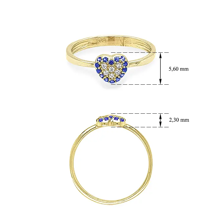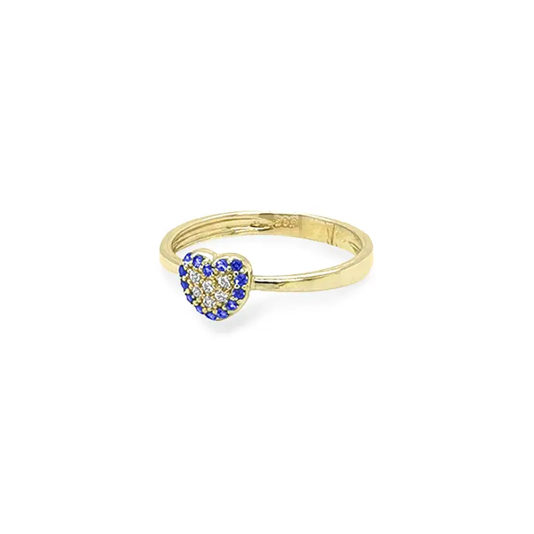 镶彩色宝石的心形金戒指