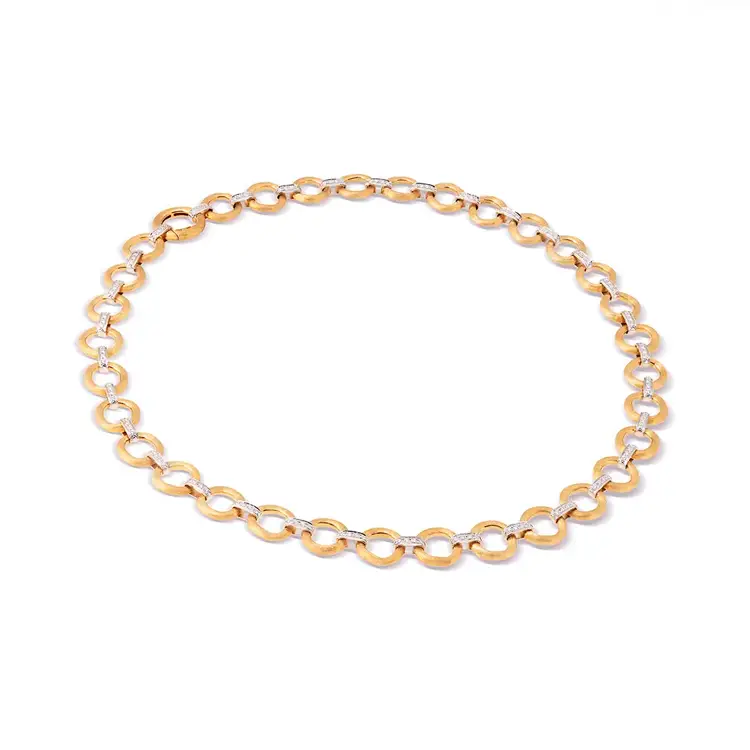 Marco Bicego Jaipur Diamond CB2660-B YW 项链展现出意大利珠宝的精致与高雅。采用 18K (750/1000) 黄色黄金 制作,表面为 哑光处理,散发柔和光泽,突显黄金的自然质感。长度 45 cm,优雅贴颈,勾勒女性颈部线条之美。