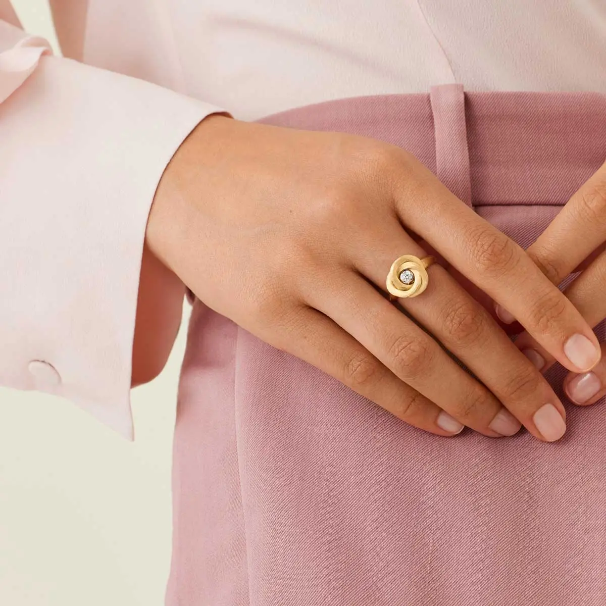 这款 Marco Bicego Jaipur Link AB648 B YW Q6 戒指是优雅与精致品味的典范之作。采用 18K 黄色黄金 (750/1000) 制作,表面融合 抛光与哑光工艺,打造出光影与质感的完美对比。