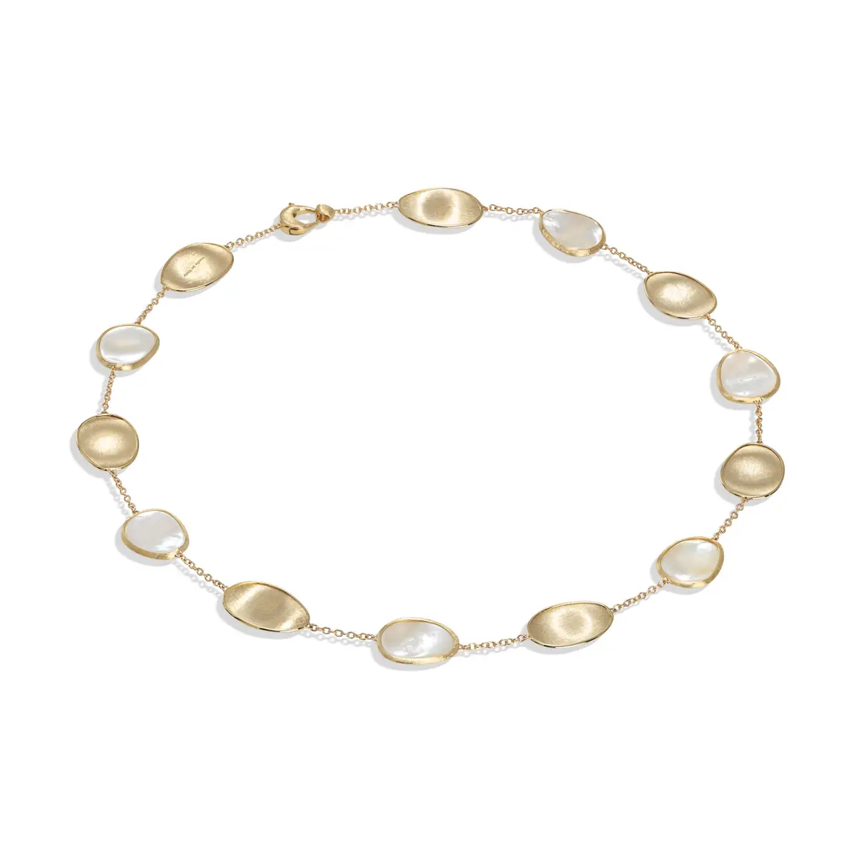 Marco Bicego Lunaria CB2099 MPW Y-02 项链展现自然灵感与优雅气质。采用 18K (750/1000) 黄色黄金 制作,表面为 亮面与哑光结合,在光影间呈现细腻层次。长度 43 cm,轻盈贴颈,展现柔美高贵。