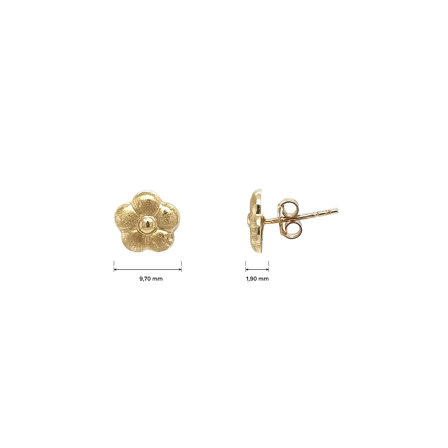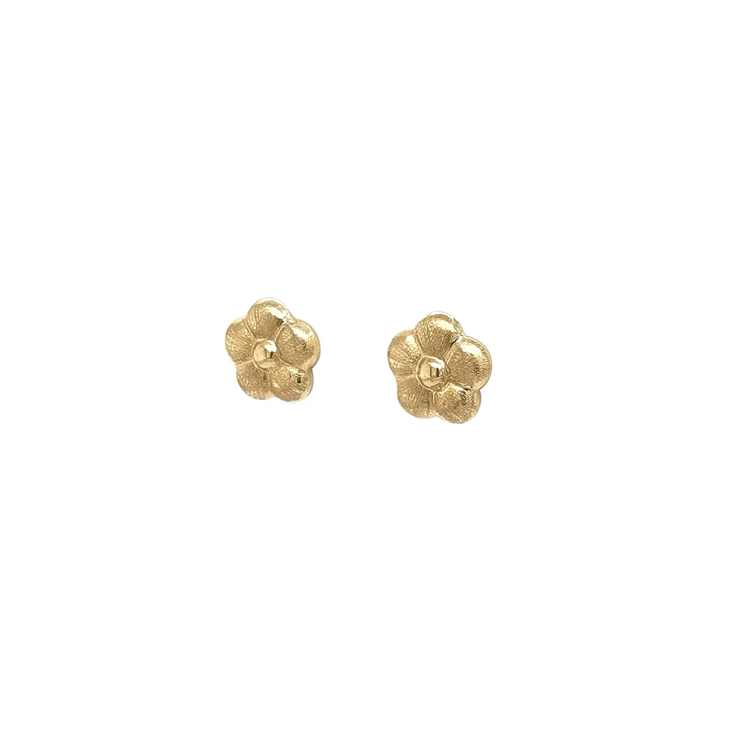 这款哑光金色小花耳钉以精致的花瓣纹理呈现优雅又俏丽的气质。光亮的中心部分与哑光花瓣形成柔和对比,增添自然光泽。小巧的尺寸适合成人与儿童佩戴。
