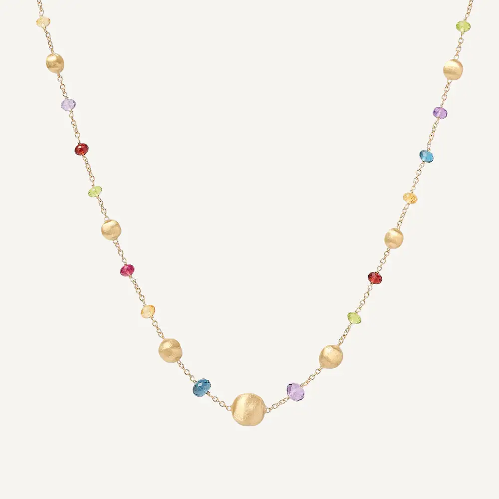 这款来自 Africa 系列的项链,是对自然元素和意大利精湛工艺的致敬。标志性的金珠与柔和的哑光质感让人联想到温暖的沙漠与非洲的日落,整件作品散发着如同护身符般的美感与生命力。
