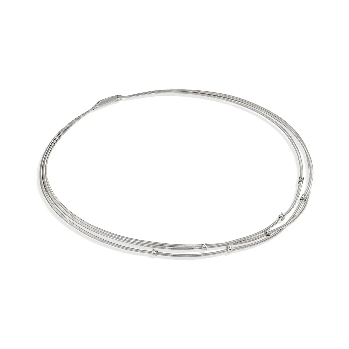 Marco Bicego Goa CG617 B W 01 项链展现了意大利珠宝工艺与现代美学的完美融合。采用 18K (750/1000) 白金 制作,结合 亮面与哑光处理,散发出低调而永恒的优雅。长度 41 cm,贴合颈部线条,展现女性高贵气质。