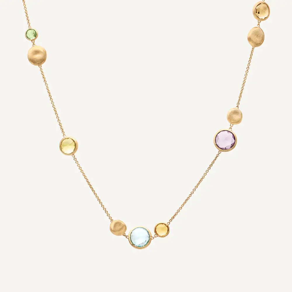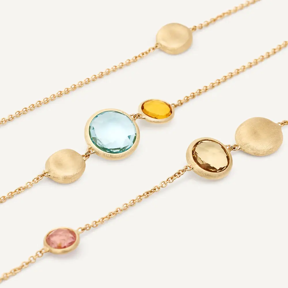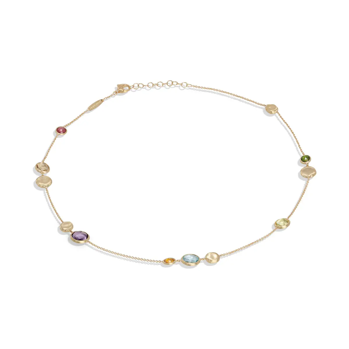 Marco Bicego Jaipur CB1485 MIX01 Y 02 项链展现了意大利珠宝工艺与天然宝石之美。采用 18K (750/1000) 黄色黄金 制作,表面结合 亮面与哑光工艺,散发出柔和而高贵的光泽。长度 41.5 cm,佩戴舒适优雅,贴合颈部线条。