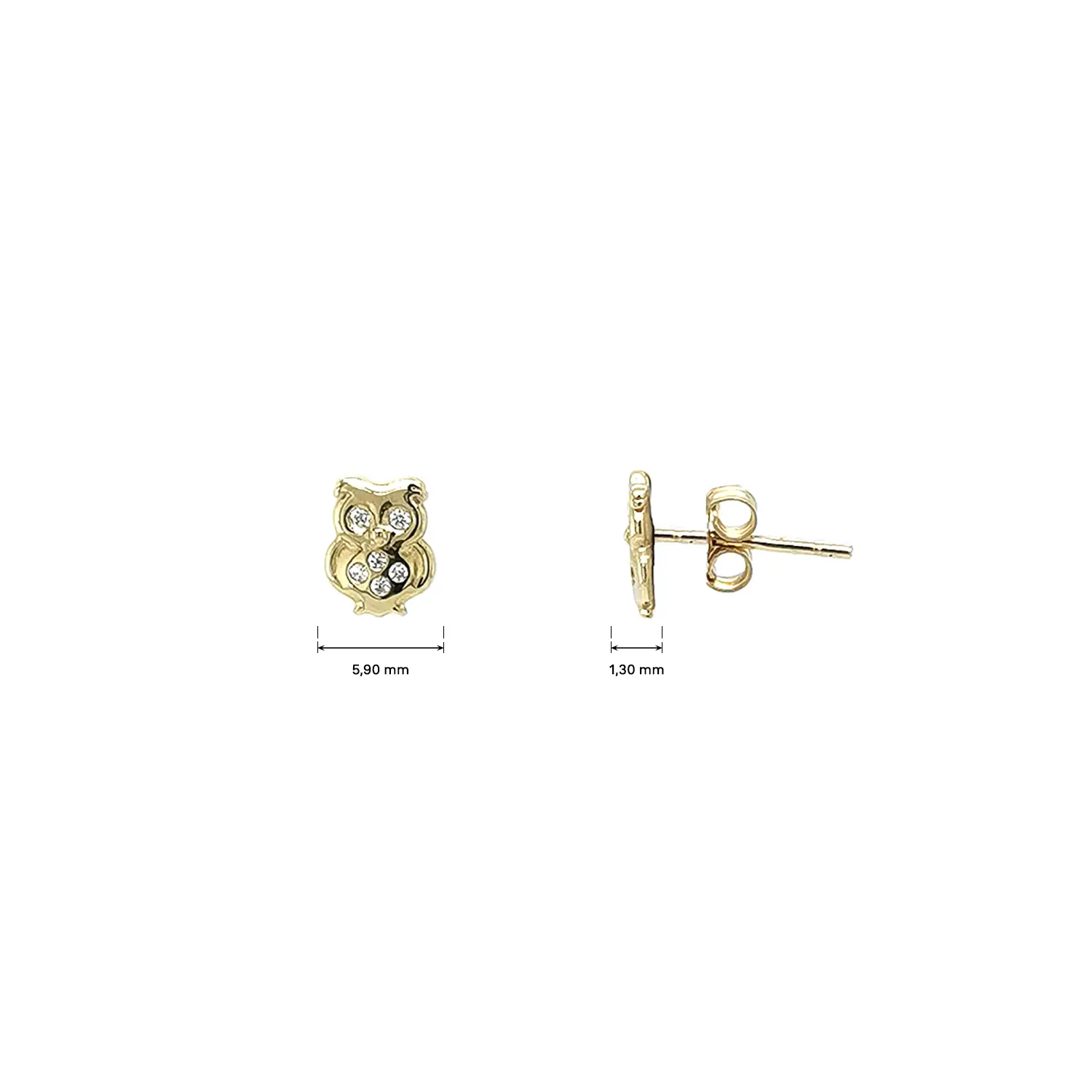 耳钉镶嵌的亮白锆石在光线下闪耀,在每次动作间都能呈现迷人的光影效果。经典耳堵设计佩戴舒适、安全,即使是小朋友也能轻松佩戴。它是小女孩、青少年以及喜爱小巧、俏皮又优雅的黄金饰品人士的理想选择,同时承载着智慧与守护的象征意义。