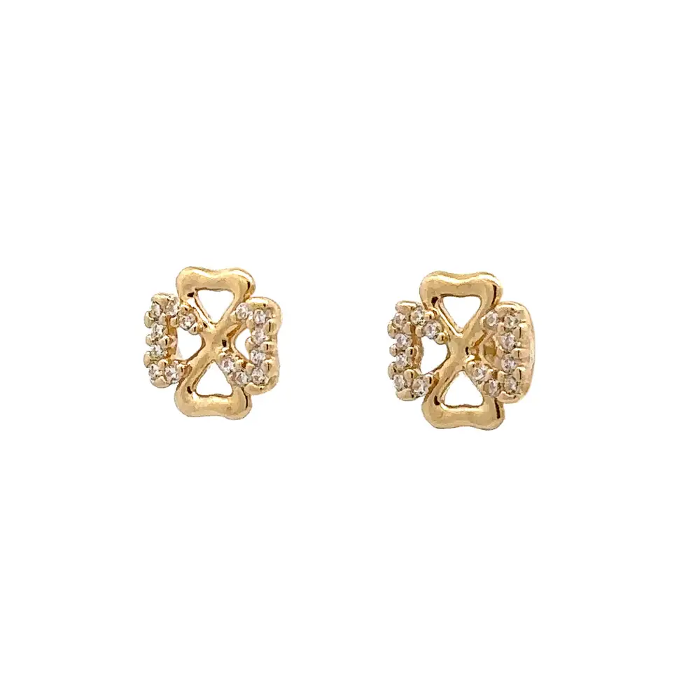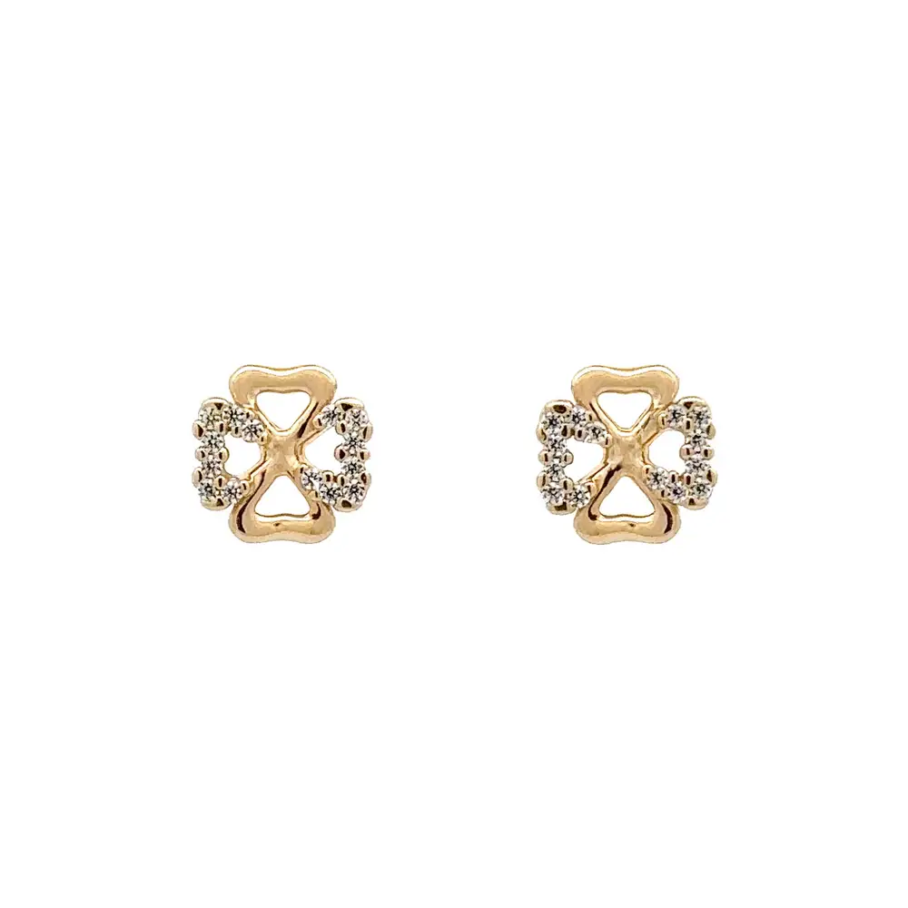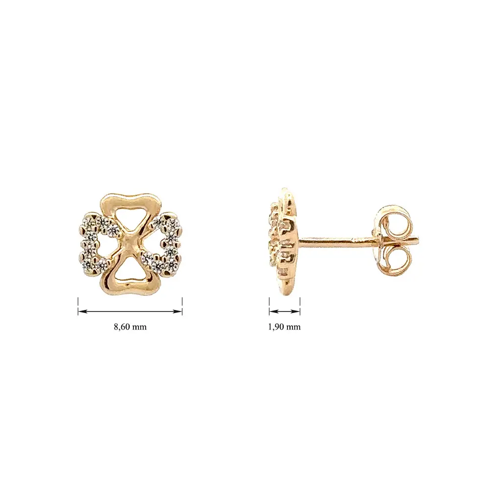 金色 Pecek 耳环四叶草镶锆石