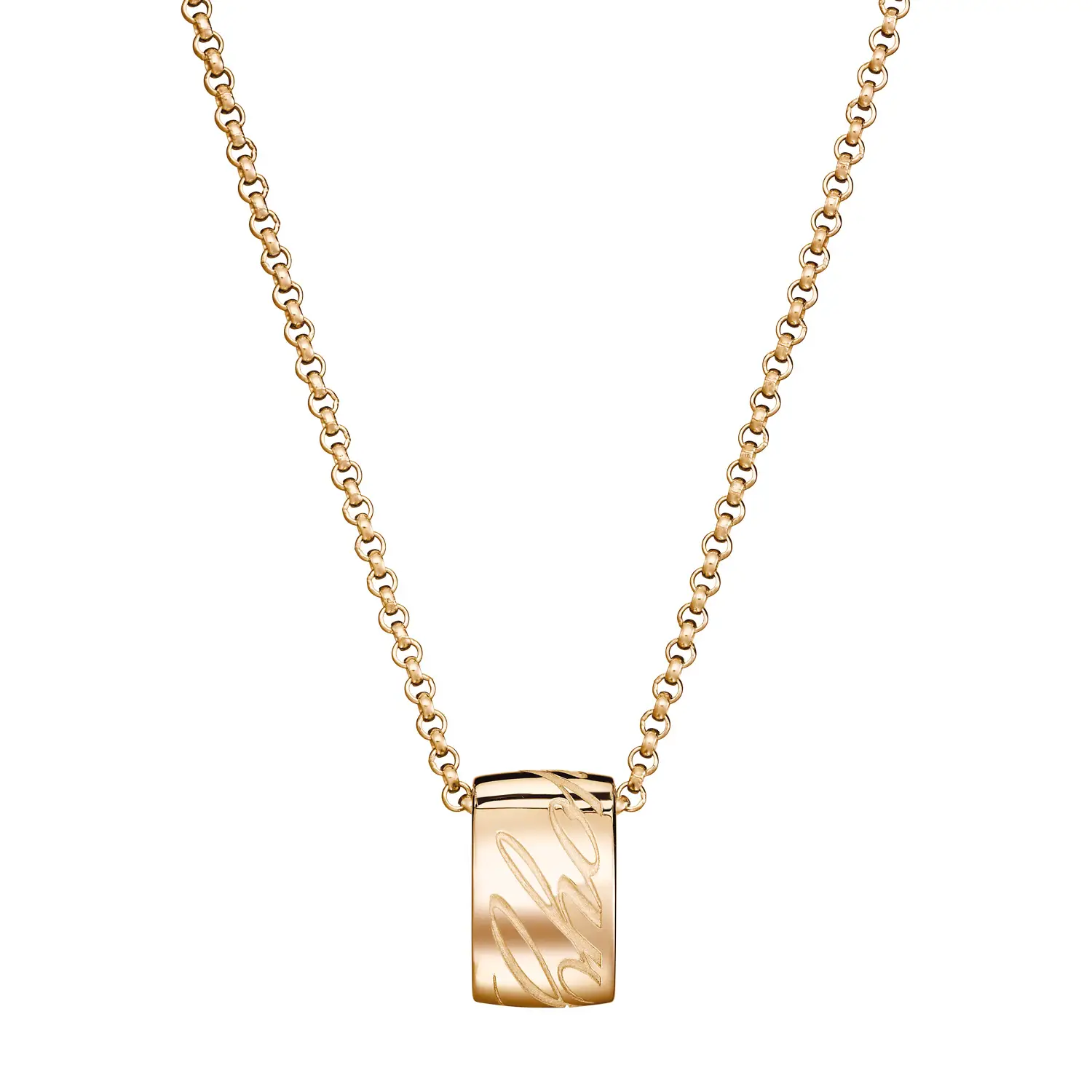 这款来自 Chopardissimo 系列的项链,展现了萧邦品牌的核心美学——优雅曲线与低调奢华。采用 18 K 玫瑰金 精制,饰以 经典 Chopard 签名雕刻,融合现代设计与永恒优雅。