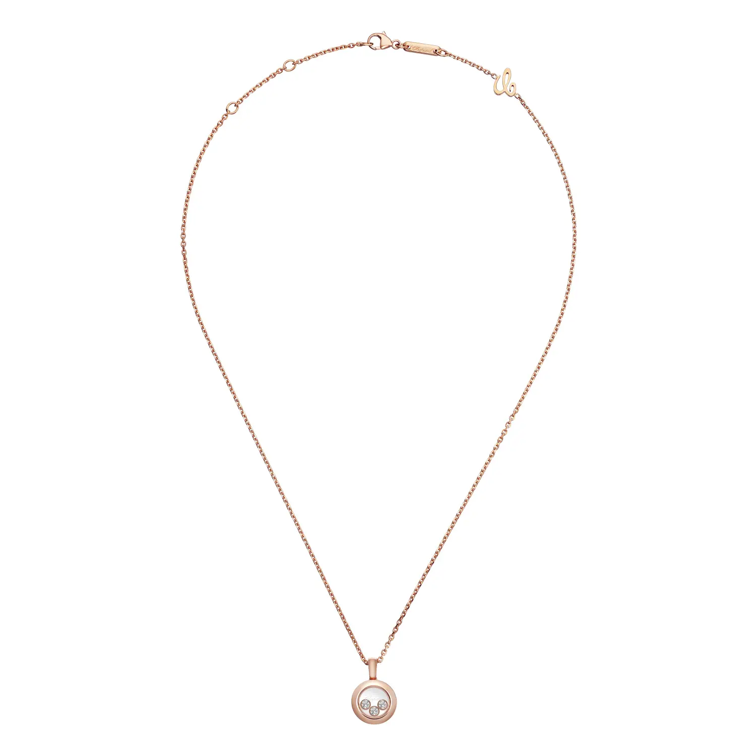 Chopard Happy Diamonds 吊坠 79A018-5001 以其 极简优雅与精致设计 脱颖而出。采用 18K 玫瑰金 (750/1000) 制作,配以完美抛光工艺,既展现细腻柔美,又充满个性。