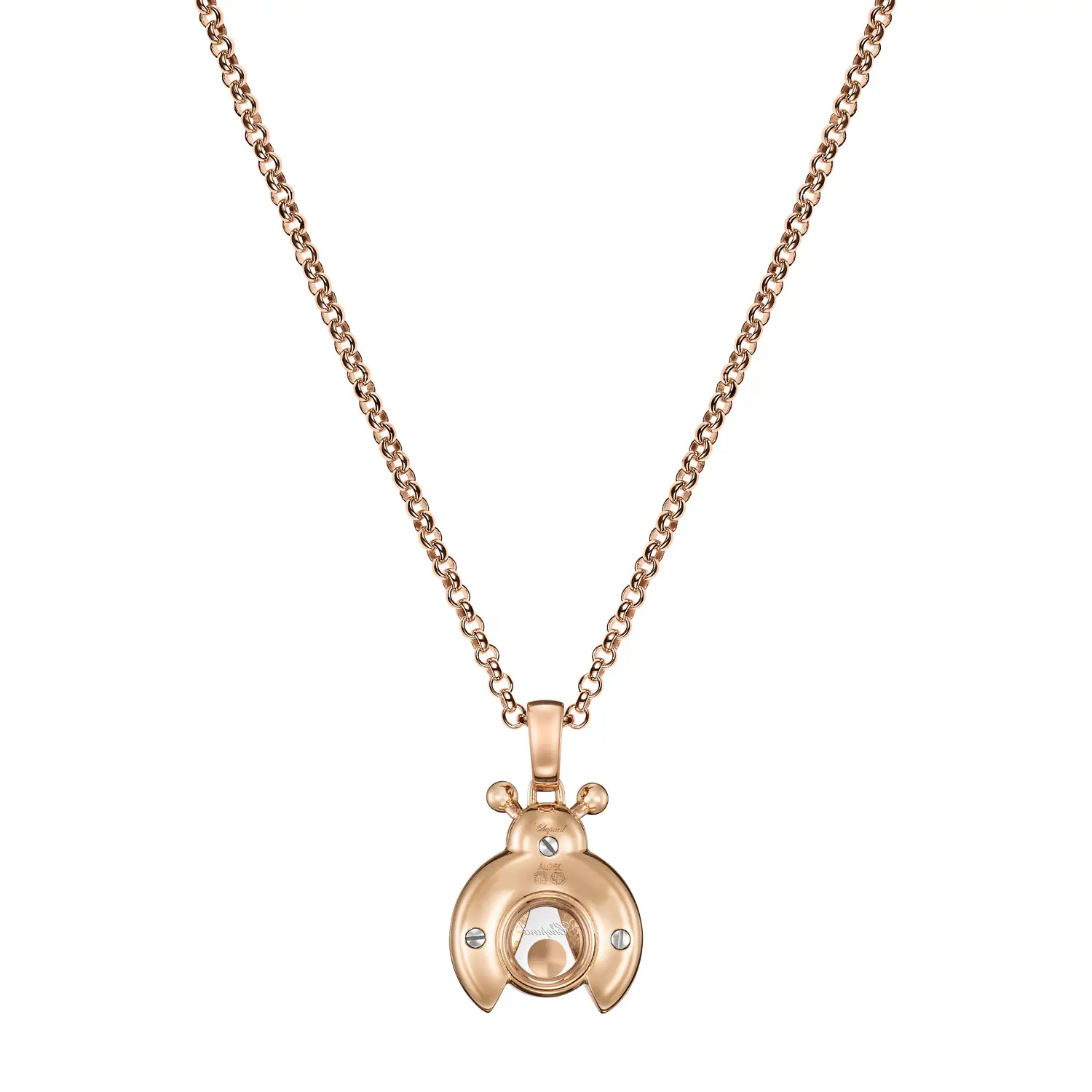 Chopard Happy Diamonds Ladybird 吊坠 79A186-5001 是一款 俏皮而极其优雅 的珠宝,将奢华工艺与精致自然元素完美结合。它采用 18K 玫瑰金 (750/1000) 制作,抛光表面光亮无暇,以标志性的瓢虫造型象征好运,成为任何装扮的亮点。