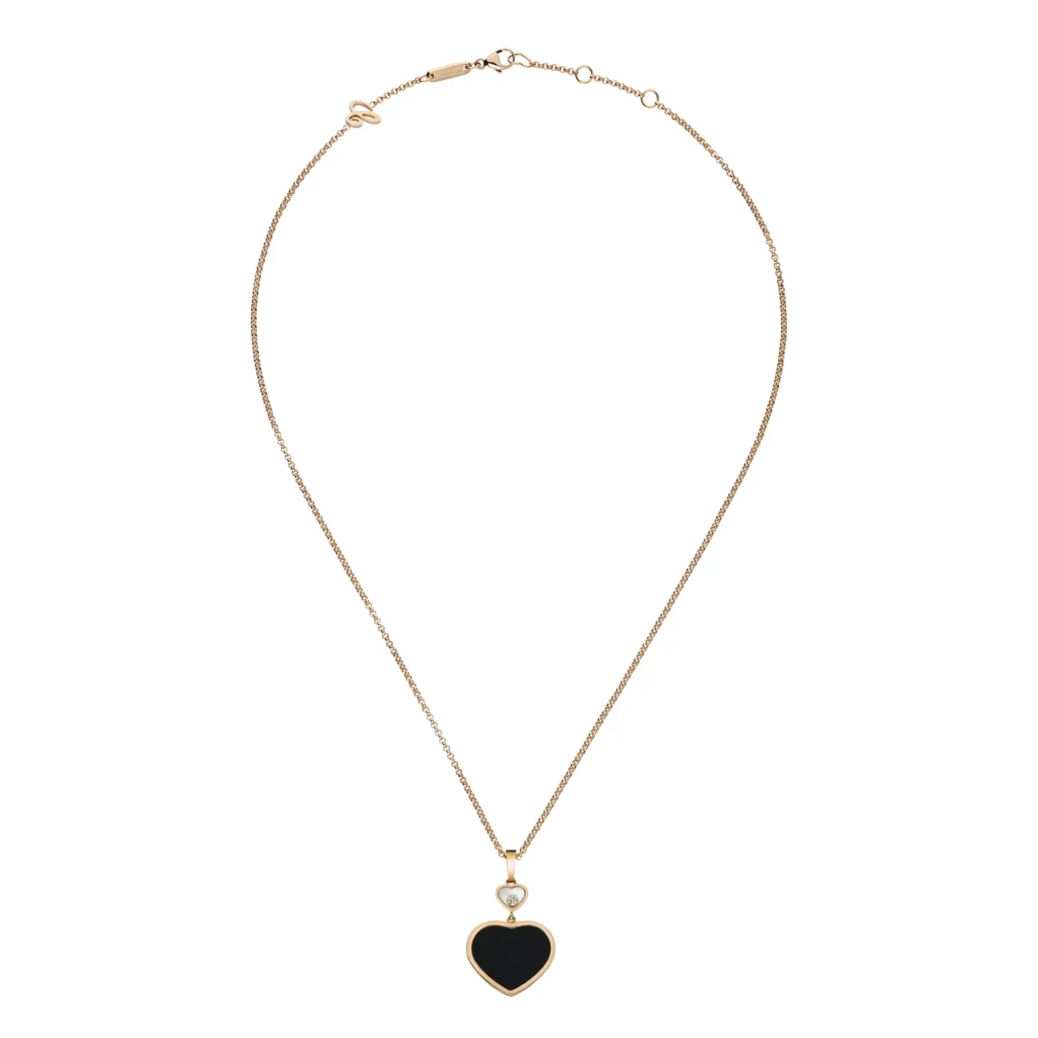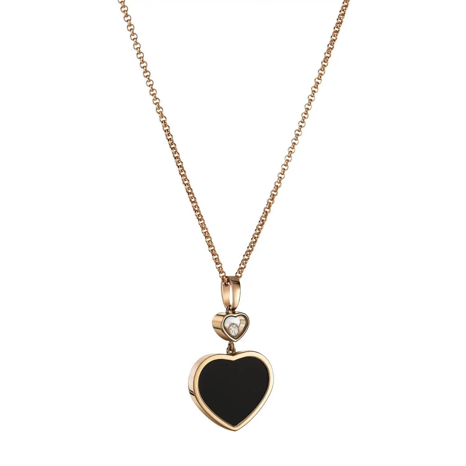 萧邦 Chopard Happy Hearts 797482-5201 吊坠展现优雅、感性与慷慨的完美平衡。采用 18K 道德玫瑰金 精制而成,心形吊坠镶嵌 黑玛瑙,象征爱与力量。黑色石材与玫瑰金的对比营造出现代而高贵的气质。