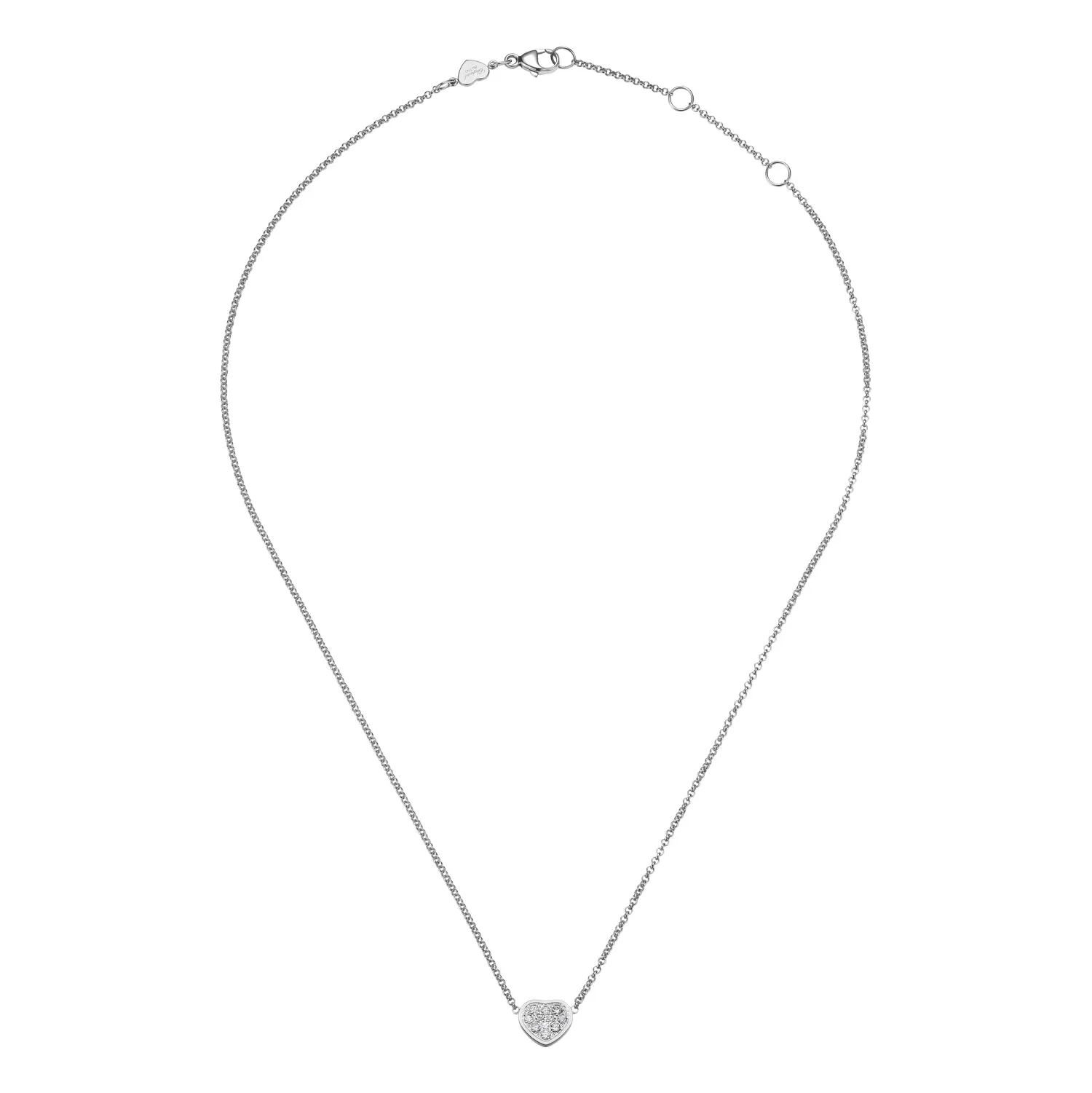 萧邦 Chopard My Happy Hearts 81A086-1901 项链展现 柔美与永恒优雅。采用 18K 道德白金 制成,饰以 总重 0.12 克拉的钻石心形图案,在光线下闪耀迷人光彩。极简设计平衡了低调与奢华之美。