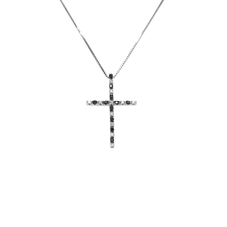 黑白钻石十字架黄金吊坠