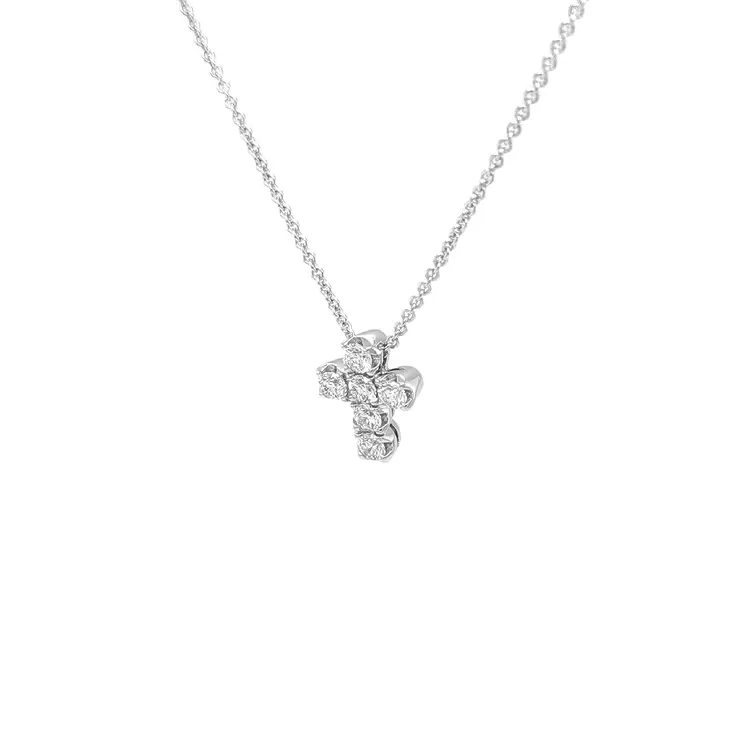 这款十字架钻石金吊坠将精神象征与恒久优雅相融合。采用 18K 白金(750/1000)、抛光工艺,并配经典的**十字架(宗教)**图案,气质柔和却醒目——适合日常亦适合重要时刻。