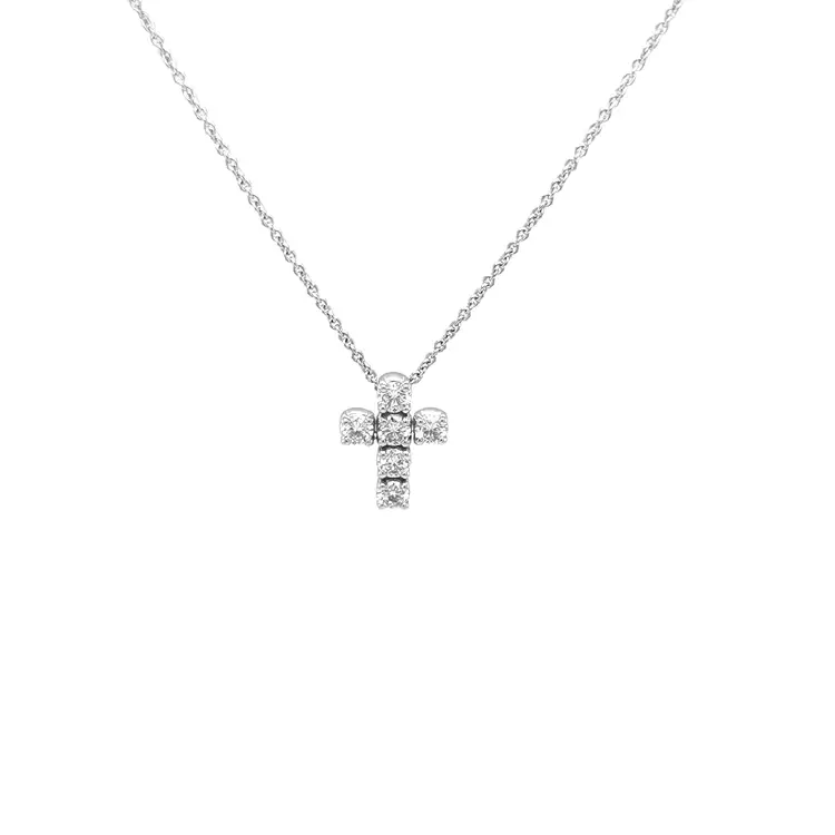 这款十字架钻石金吊坠将精神象征与恒久优雅相融合。采用 18K 白金(750/1000)、抛光工艺,并配经典的**十字架(宗教)**图案,气质柔和却醒目——适合日常亦适合重要时刻。