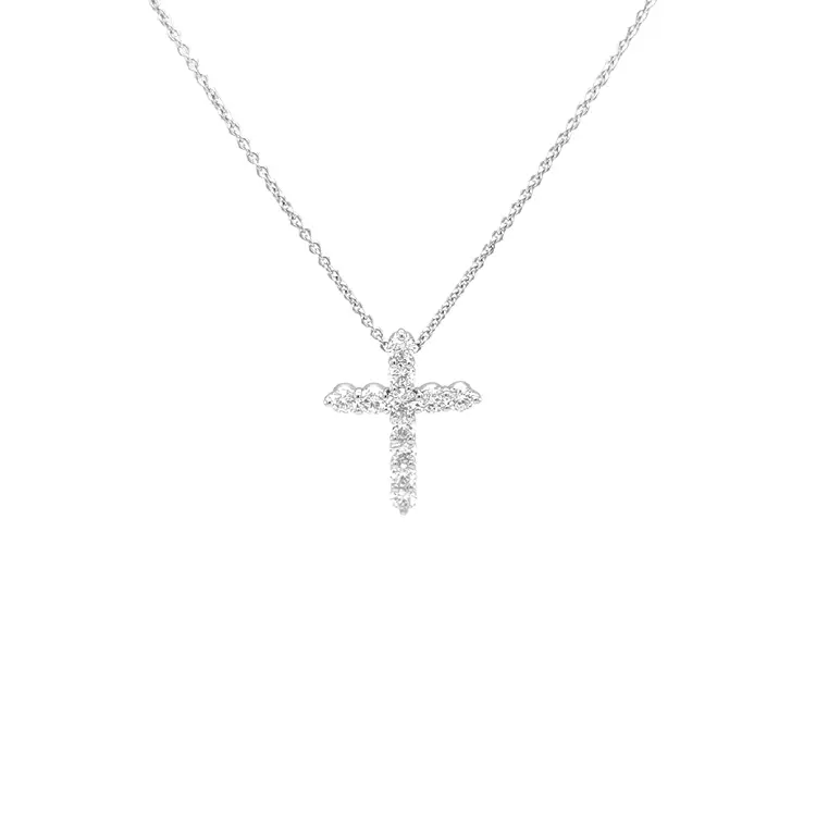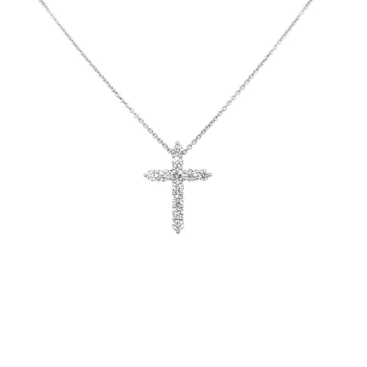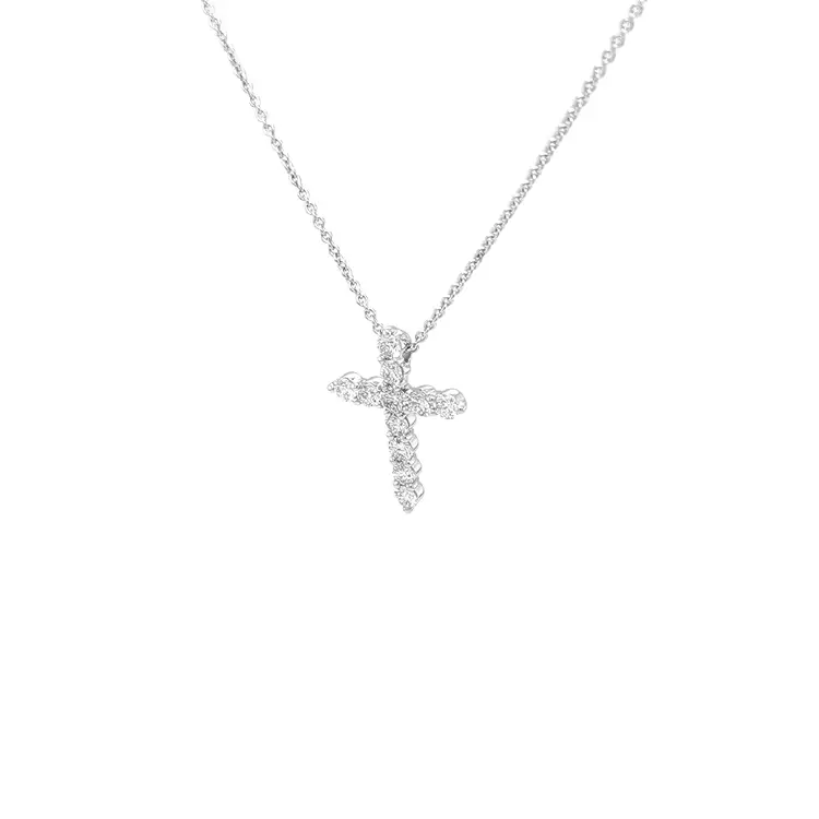 这款十字架钻石金吊坠将精神象征与恒久优雅相融合。采用 18K 白金(750/1000)、抛光工艺,并配经典的**十字架(宗教)**图案,气质柔和却醒目——适合日常亦适合重要时刻。