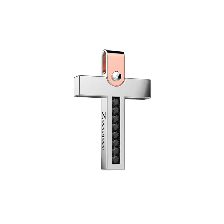 Zancan EPE099BR 为优雅的吊坠,将现代意式设计与个人信仰象征相融合。采用 **18K 金(750/1000)打造,白金与玫瑰金双色(bicolor)并配抛光处理,点缀经典十字(宗教)**元素——经典百搭,适合休闲与正装。