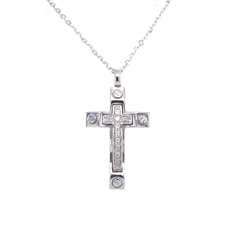 镶钻赞坎徽章十字架黄金吊坠 EC592BR