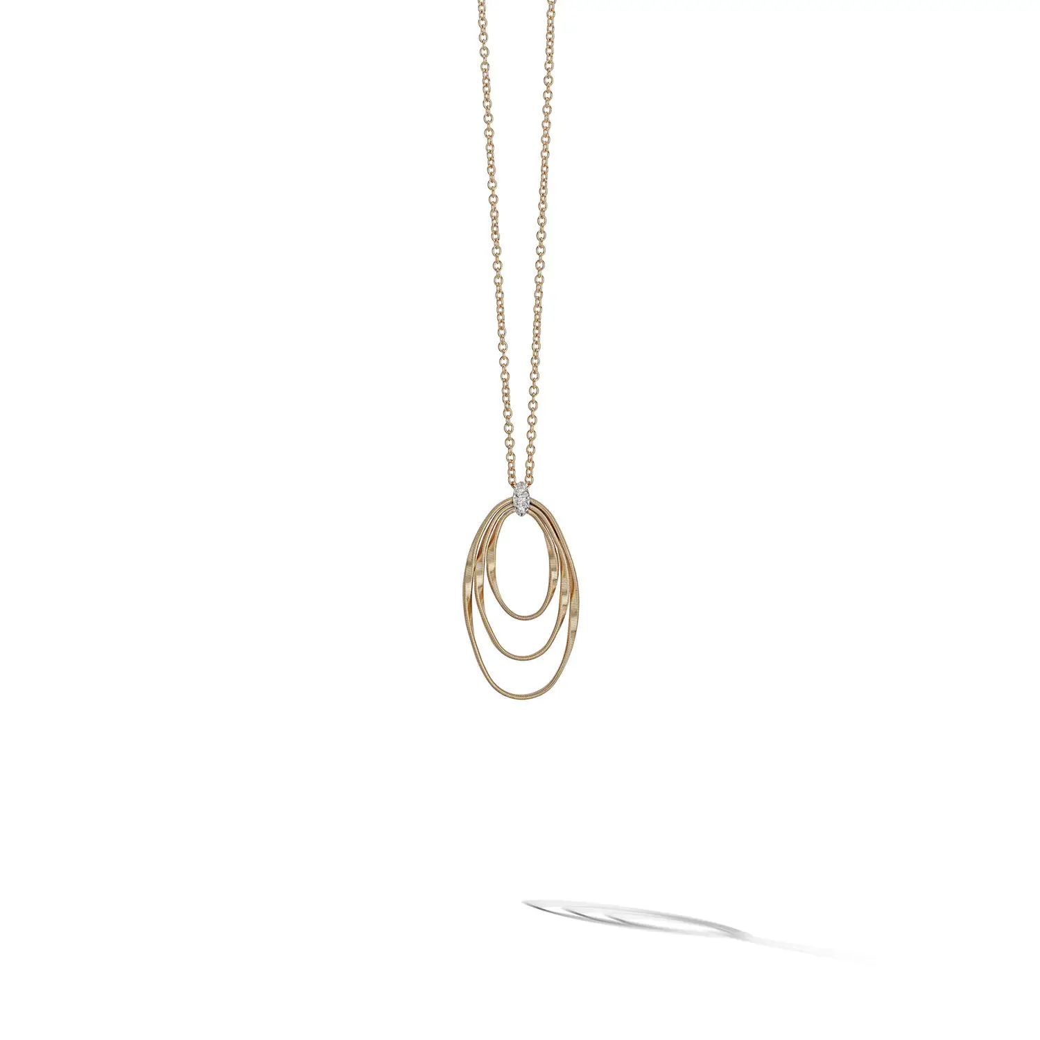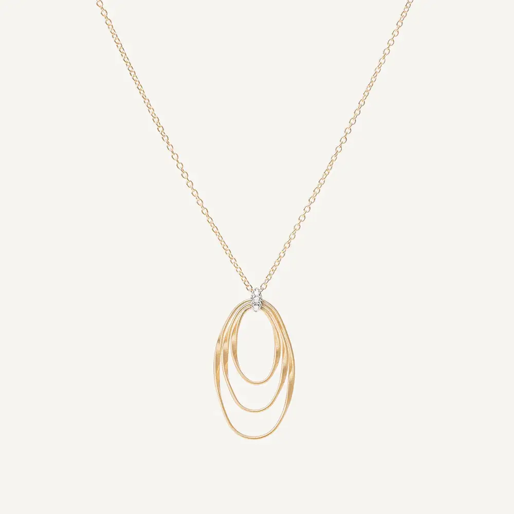 Marrakech Onde 系列以波浪般的金线造型为特色,象征律动、能量与意大利金匠的手工艺术。哑光表面柔和散射光线,使吊坠呈现现代且细腻的光泽。