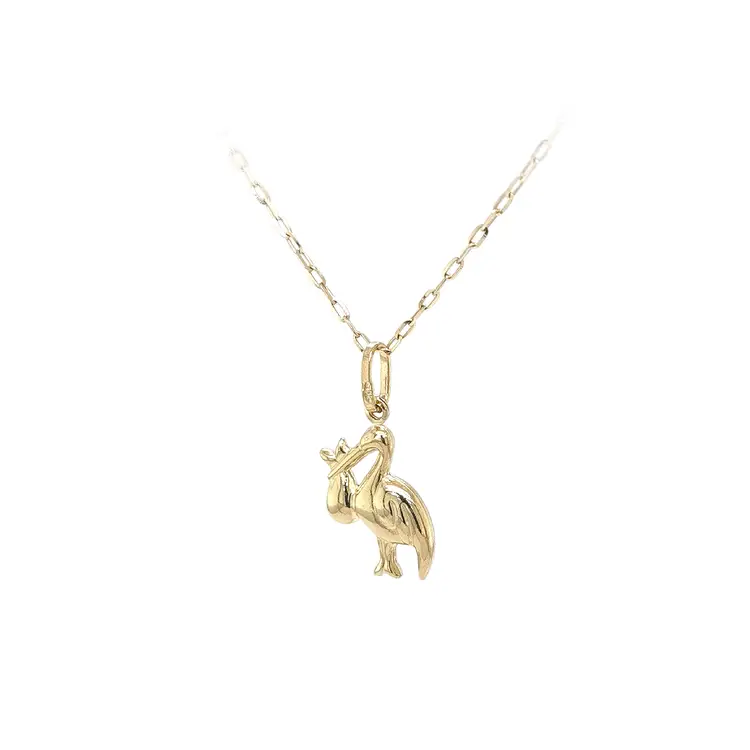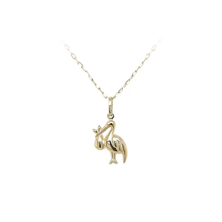 鹳与婴儿黄金吊坠