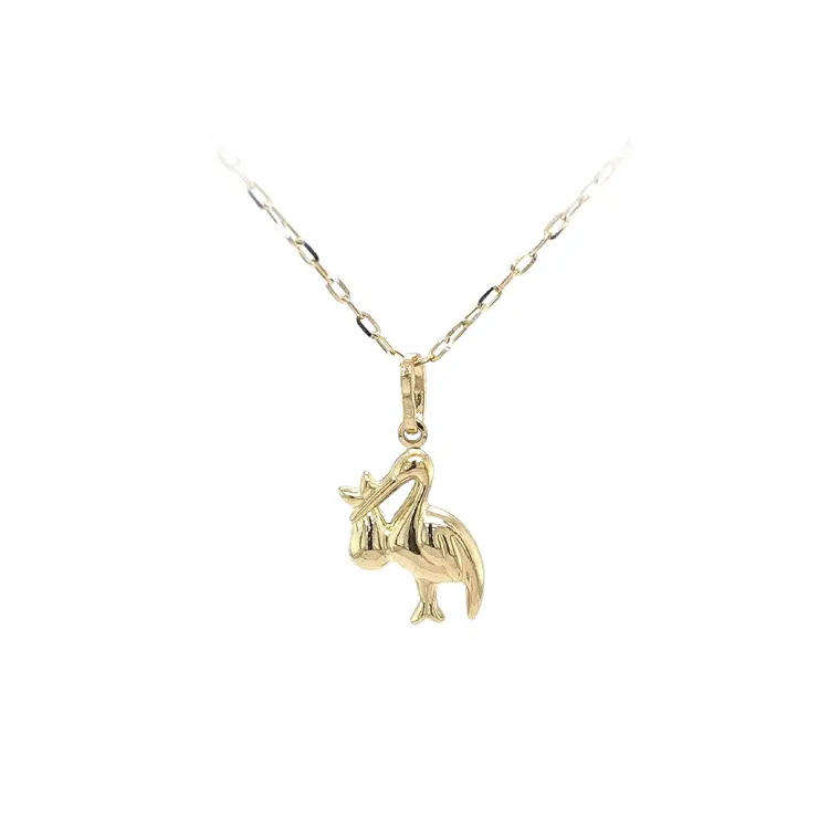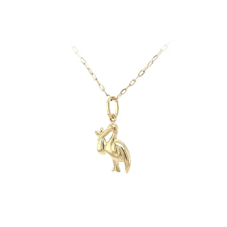 鹳与婴儿黄金吊坠