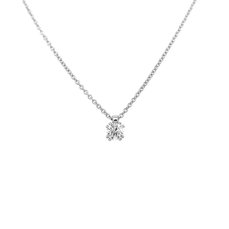 优雅永不过时,永不落伍。如果您想永远流行,那就为您的首饰盒添上永恒的单品,它们可以搭配不同类型的服装。这款 18K 白金吊坠反映了一位真正女士的灵魂,她不仅具有时尚感,而且知道什么适合自己。珠宝上镶嵌的美丽圆钻为其增添了一抹奢华。