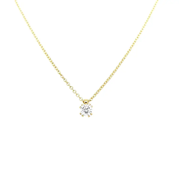 黄金是奢华、永恒和高雅品位的象征。因此,用黄金制作的珠宝非常受欢迎。Beny Jewellery 的金匠们也深谙此道,创造出精美绝伦的珠宝。这款 18K 黄金吊坠就是他们精湛技艺的完美体现,吊坠上镶嵌着一颗璀璨夺目的钻石。吊坠采用名牌包装盒,是生日、工作纪念日或其他重要场合的理想礼物。