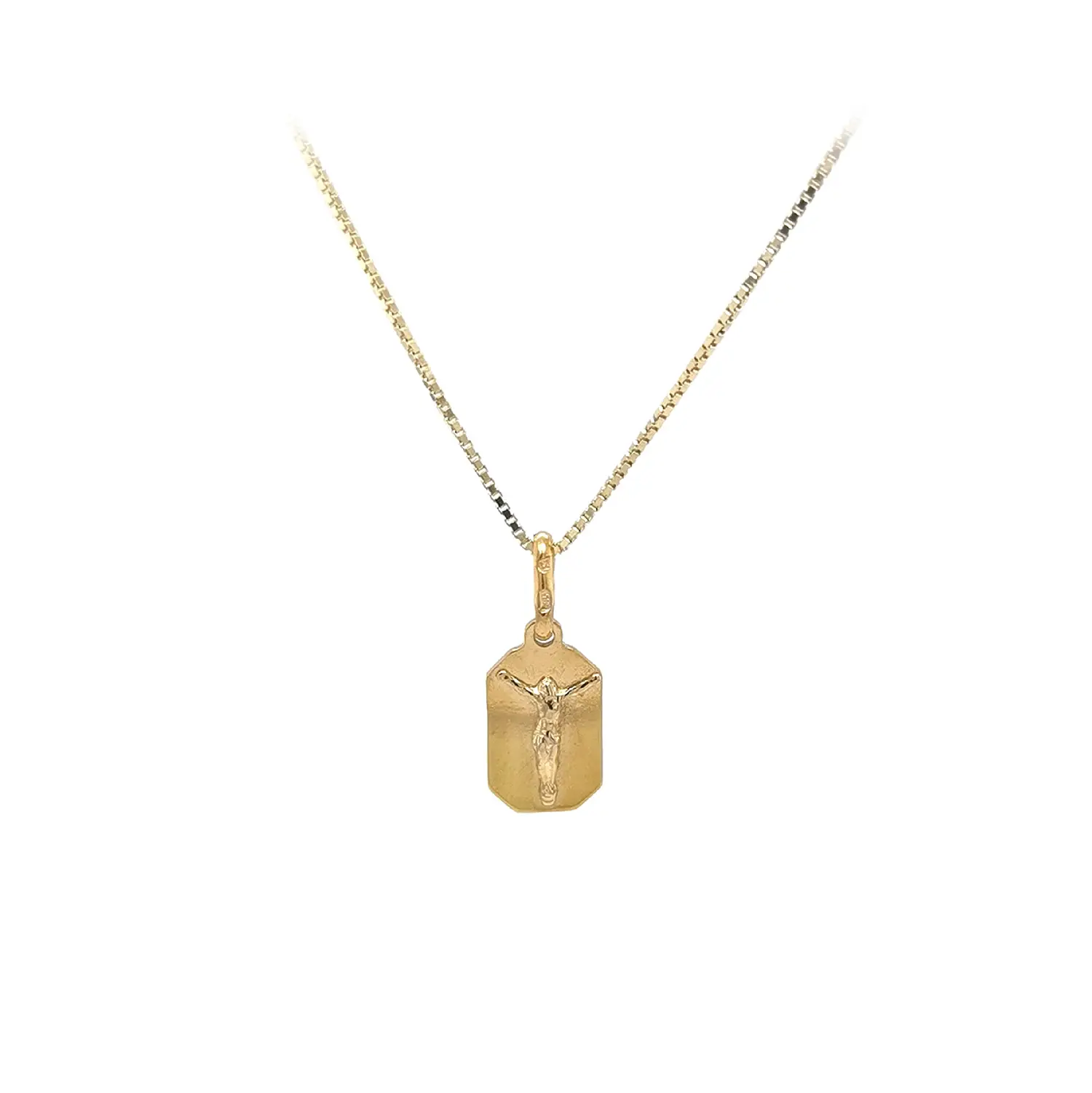 这款金质耶稣基督吊坠象征着信仰、守护与精神力量。基督形象的精致浮雕搭配细腻的表面纹理,赋予吊坠庄重而永恒的美感,既典雅又富有深刻寓意。