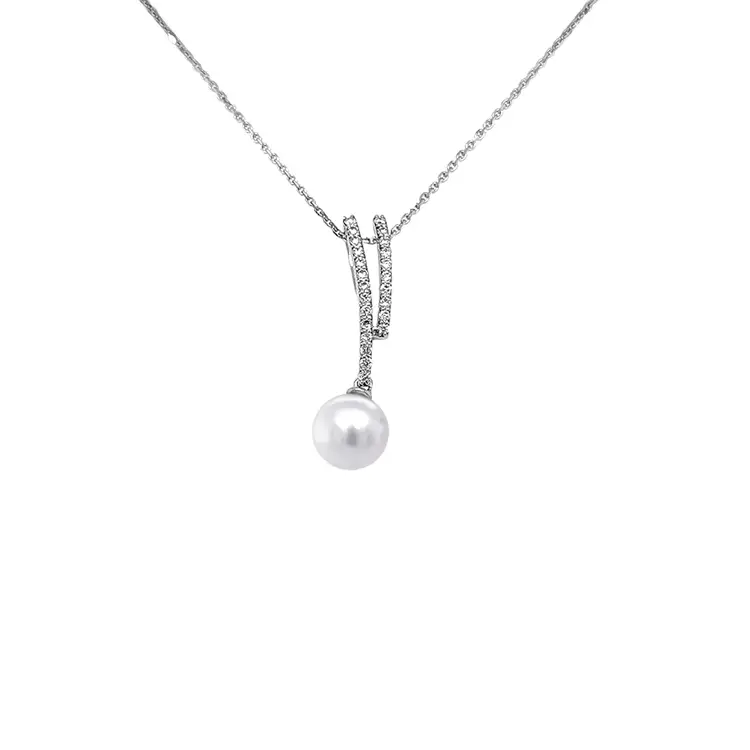 镶天然珍珠和钻石的黄金吊坠