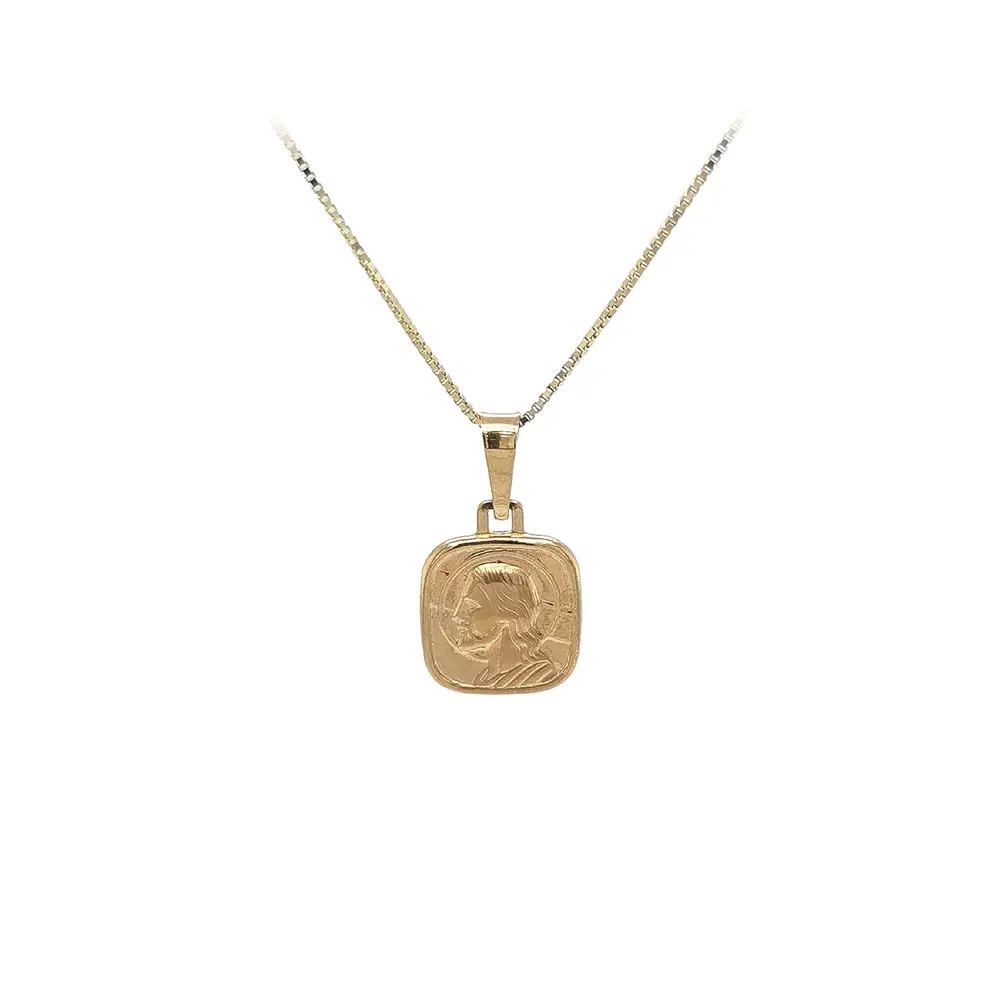 这款以耶稣基督形象为主题的黄金吊坠采用经典而富有象征意义的设计,蕴含深刻的精神内涵。精细刻画的基督侧面肖像柔和地嵌入圆润流畅的边框之中,展现出宁静而庄重的气质。抛光的黄金表面赋予吊坠高雅而尊贵的外观。