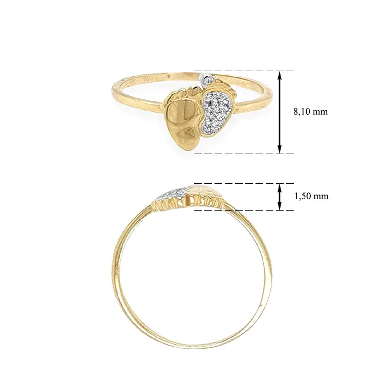 镶嵌锆石的婴儿脚金戒指