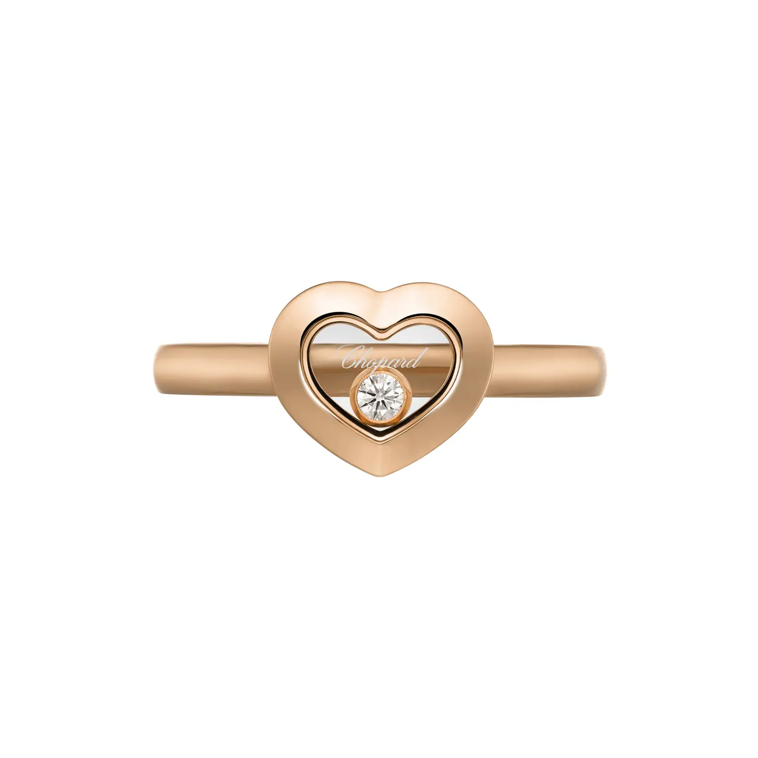 萧邦 Chopard Happy Diamonds Icons 82A054-5108 戒指展现 优雅、灵动与光影之美,正是 Happy Diamonds 系列的核心理念。采用 18K 道德玫瑰金 精制而成,中心的 活动钻石 在两层蓝宝石玻璃之间自由舞动,随动作闪耀光芒。