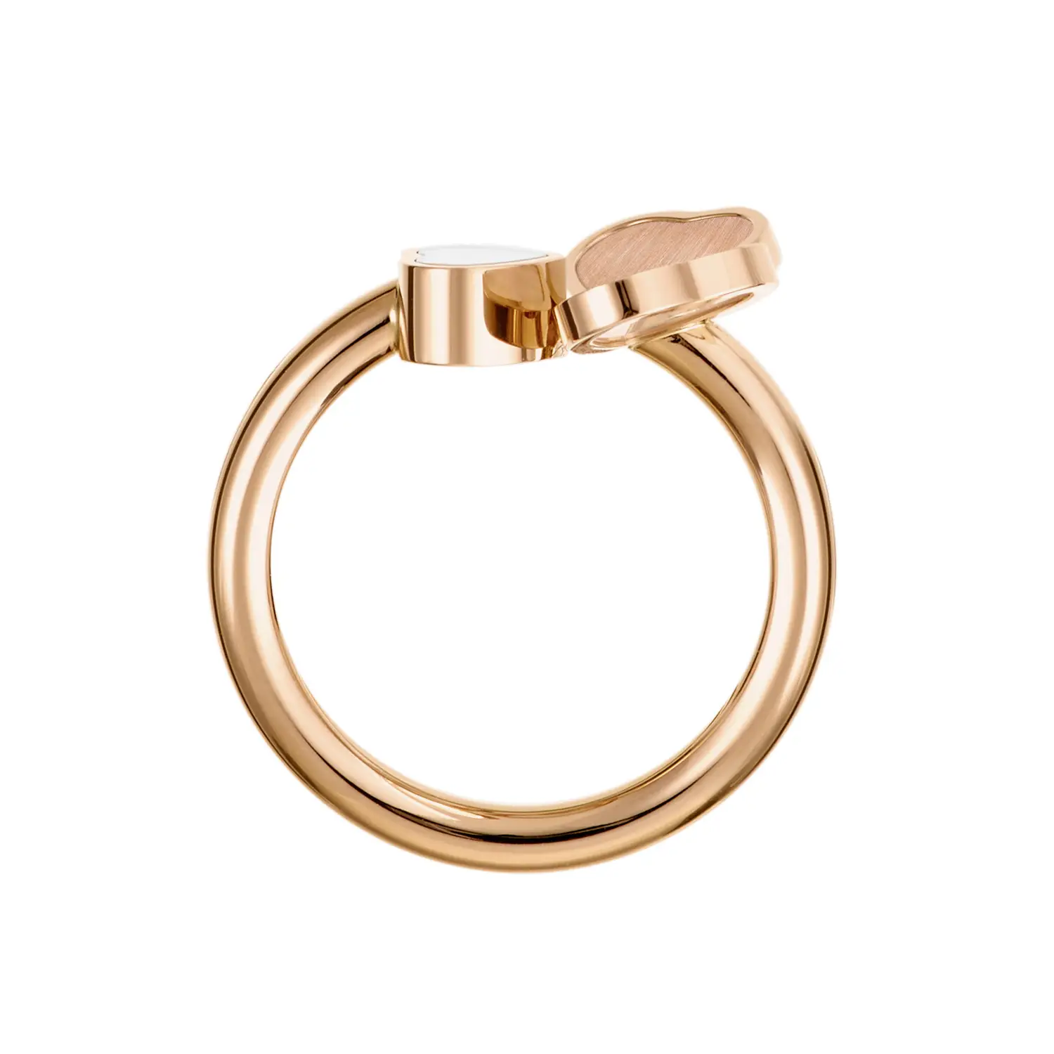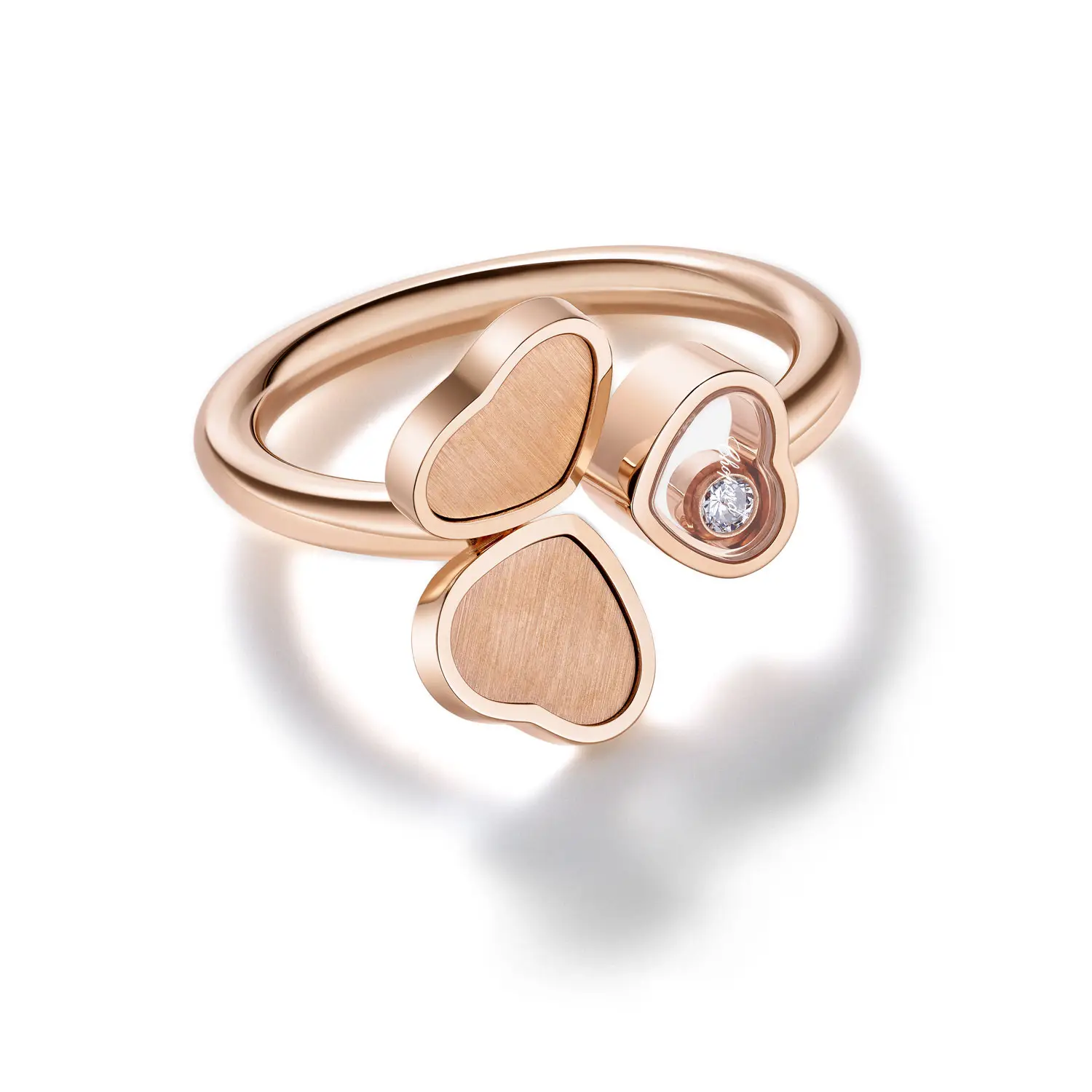 Chopard Happy Hearts 戒指 82A083-5710 以其 纯粹的优雅和浪漫的柔美心形设计 令人心醉。采用 18K 玫瑰金 (750/1000) 制作,并经过完美抛光处理,外观既精致又醒目。