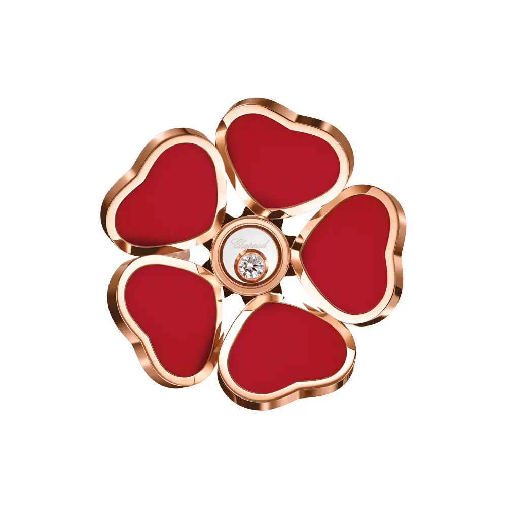 Chopard Happy Hearts Flower 82A085-5811 戒指气场十足,将标志性系列的俏皮气质与高级珠宝的典雅融为一体。采用 18K 玫瑰金(750/1000)打造,抛光表面与标志性心形元素相映成辉;醒目风格无论日常或礼服场合都出众,且易与其他 Chopard 珠宝叠搭。