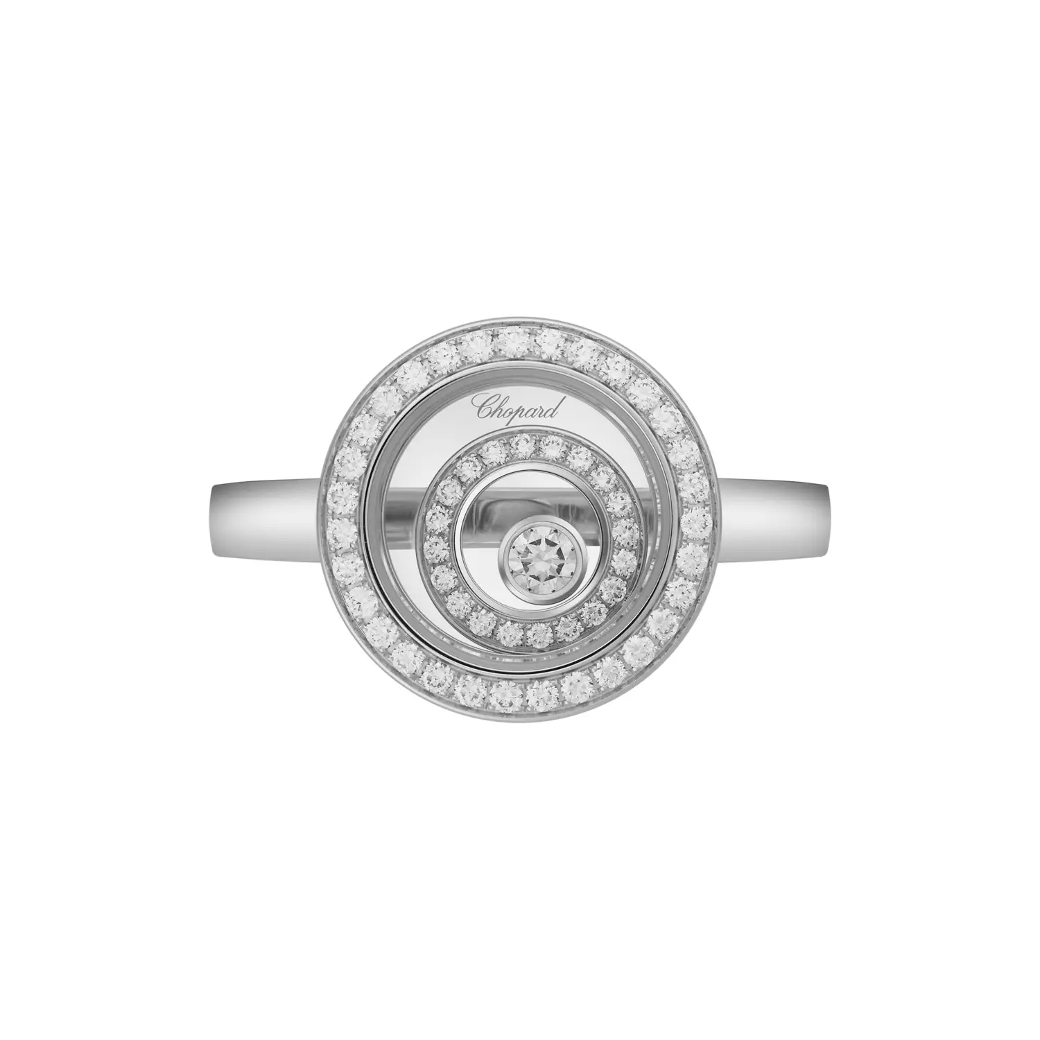 萧邦 Chopard Happy Spirit 828230-1011 戒指展现 和谐、优雅与动感之美。采用 18K 道德白金 制成,中心镶嵌 可自由旋转的 0.38 克拉钻石,被同心圆环围绕——这是 Happy Spirit 系列的标志设计。每一次动作都折射出璀璨光芒。